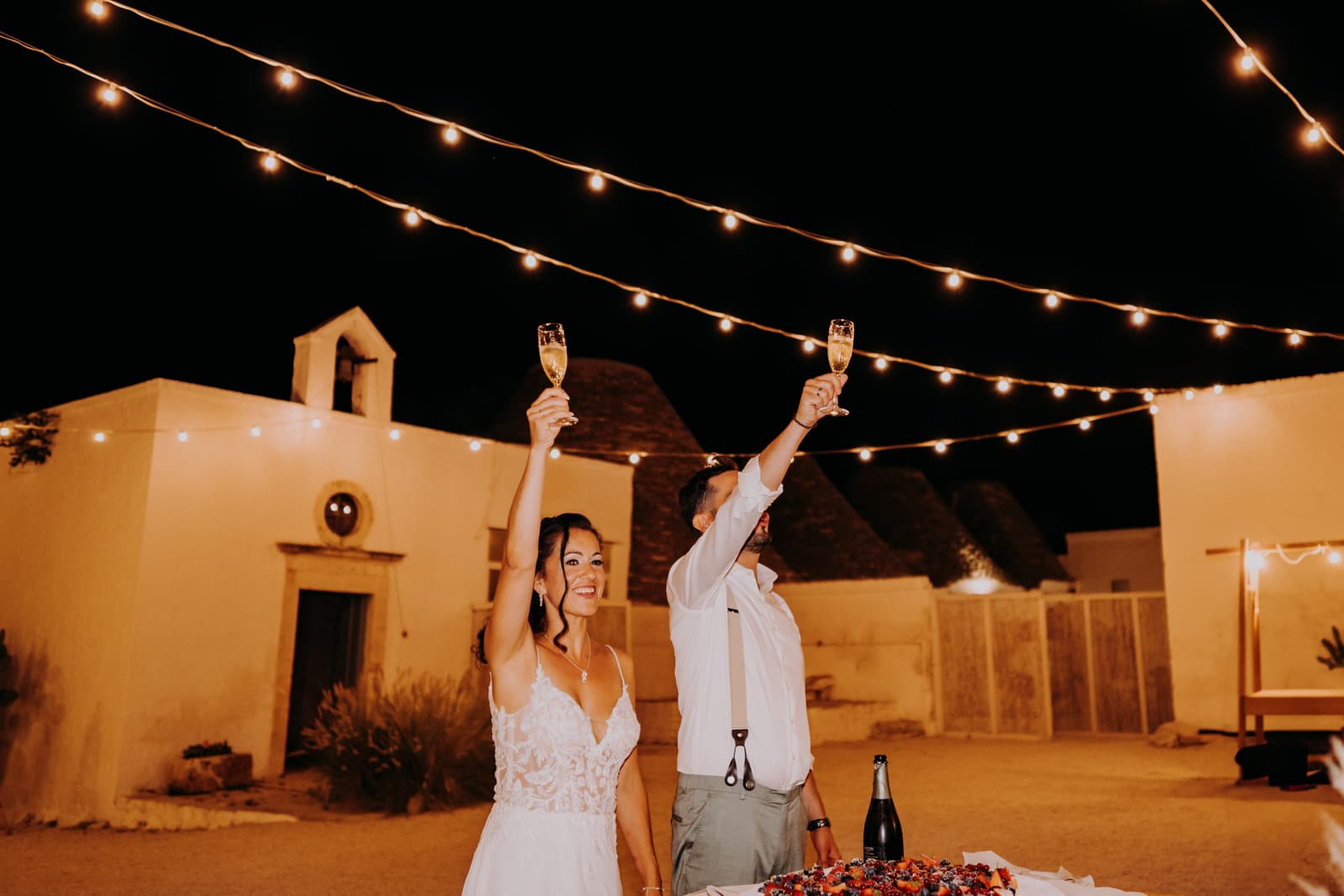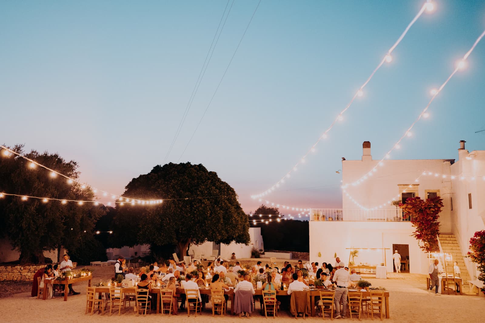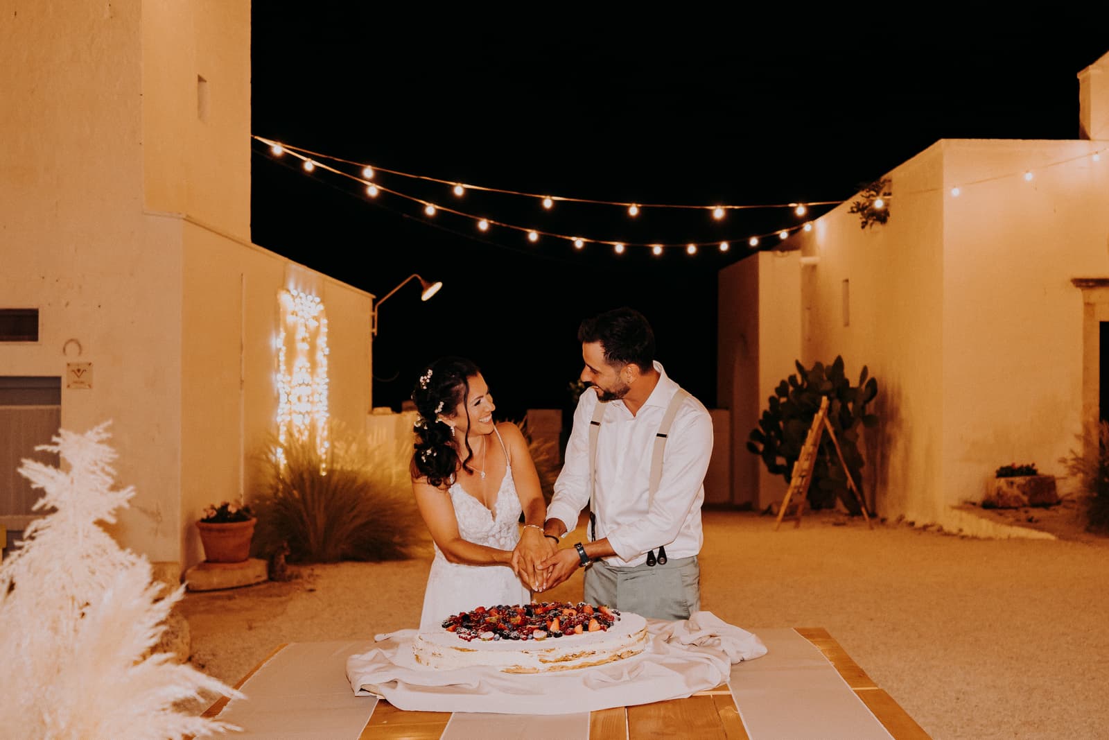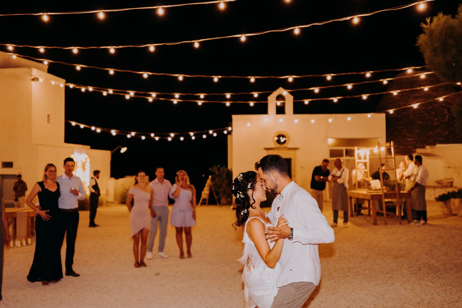 La serata è continuata all'interno della masseria, dove l’ambiente intimo e le luci soffuse hanno creato un’atmosfera calda e accogliente. Gli invitati non si sono fermati un attimo, ballando e divertendosi fino a tarda notte. Questo matrimonio non sarà mai dimenticato, non solo per la bellezza del luogo e della cerimonia, ma anche per la sobrietà e l’eleganza che ha caratterizzato ogni momento. Fabbiene e Gianpaolo hanno saputo creare una giornata davvero unica, che ha toccato profondamente tutti noi.