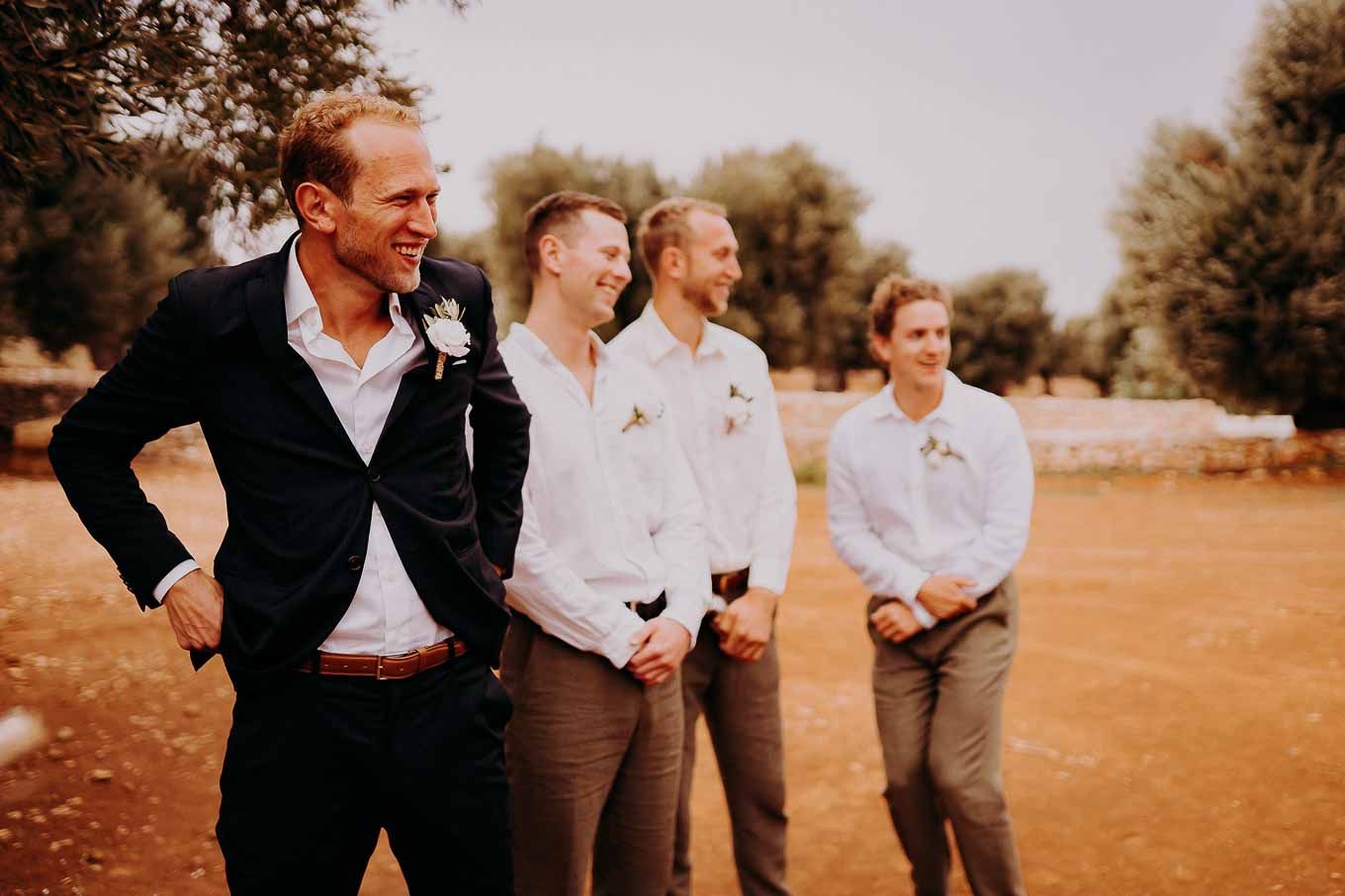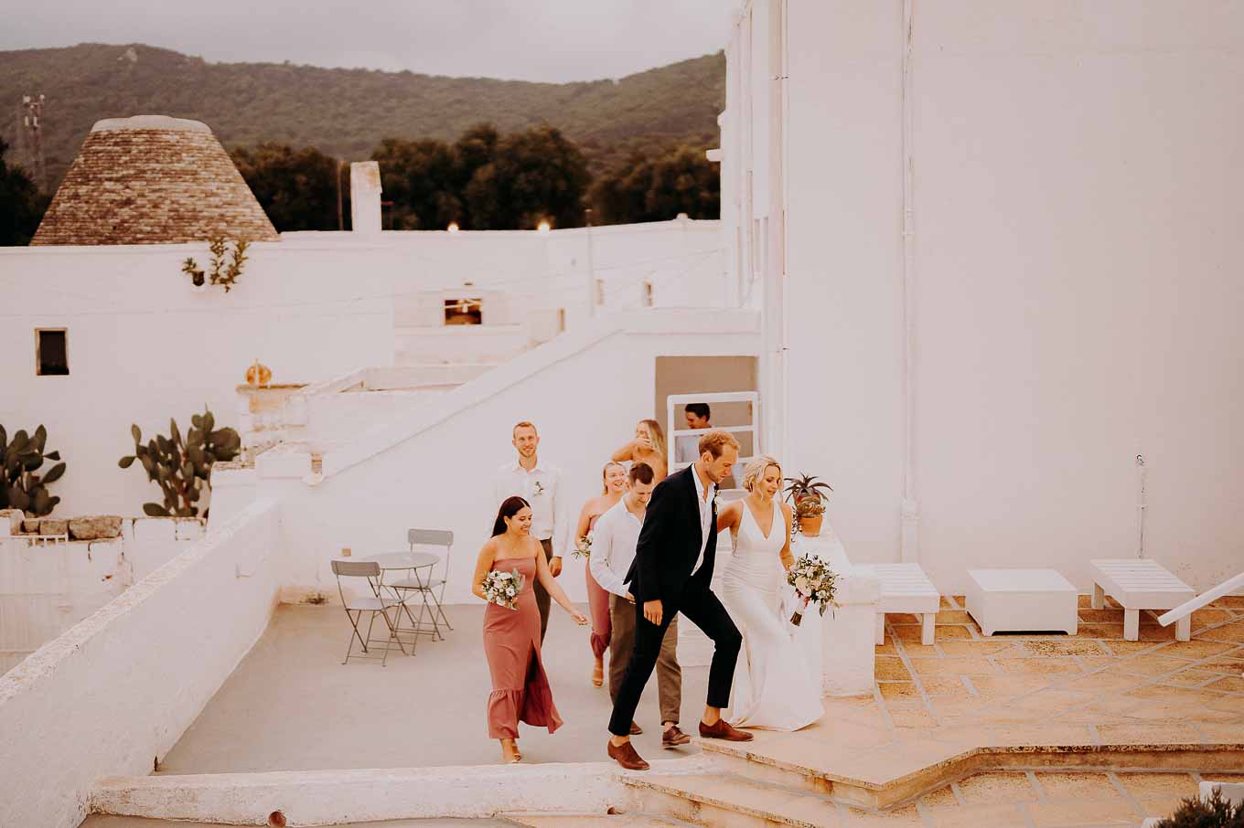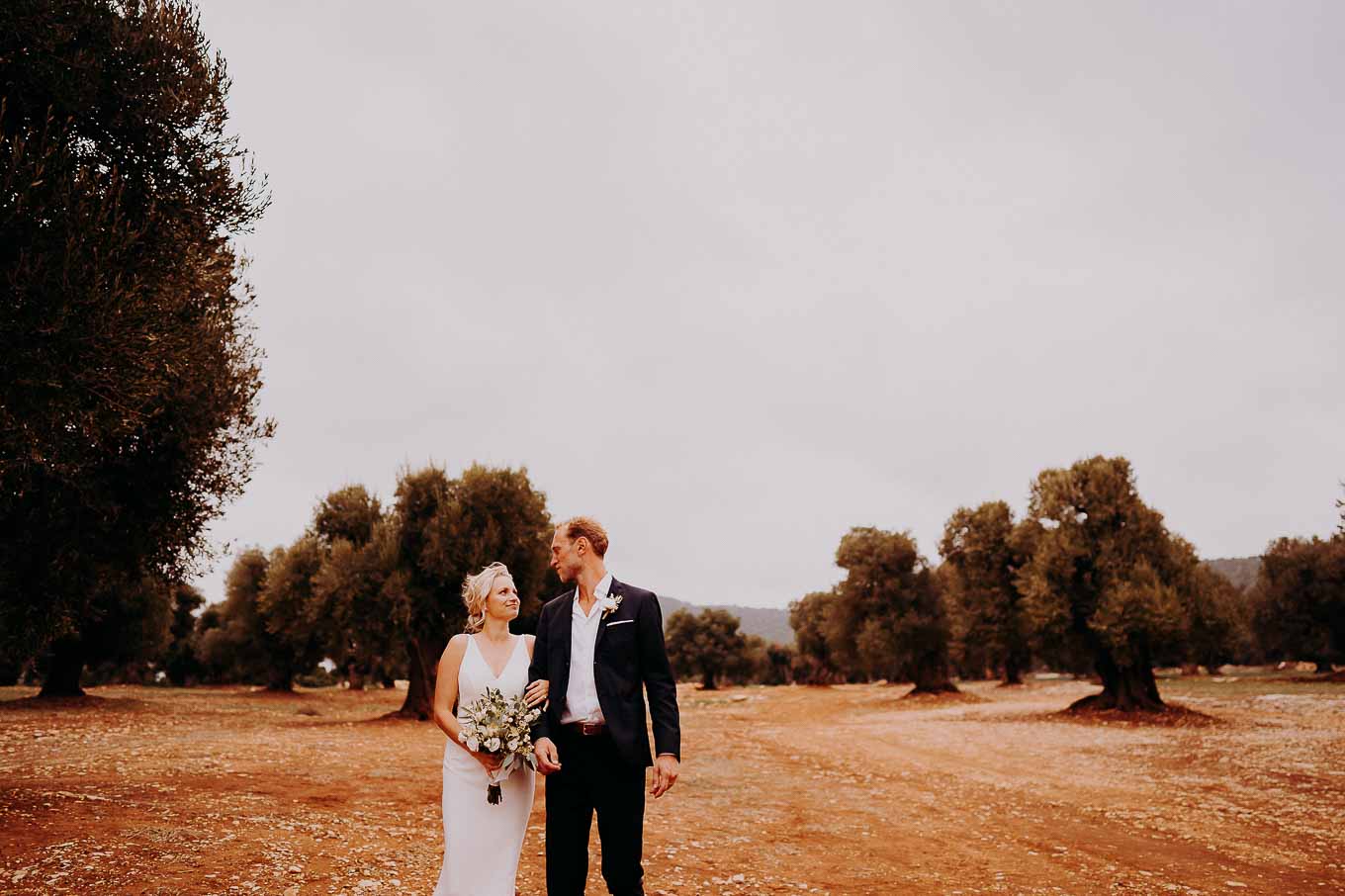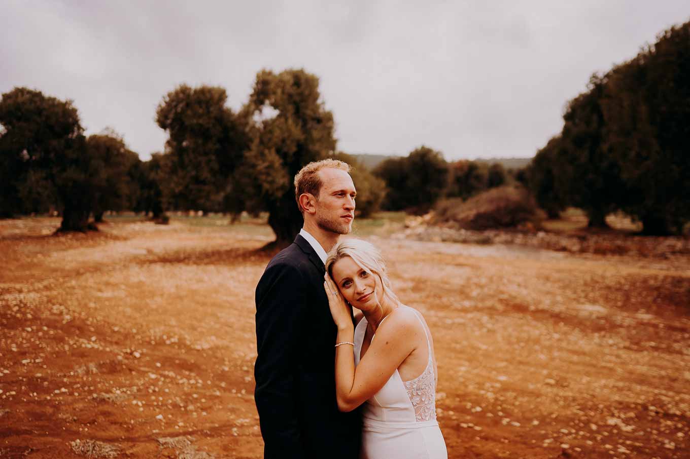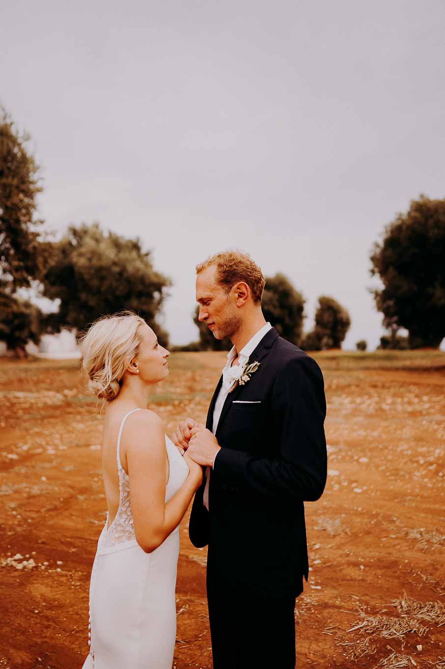 Dopo la cerimonia, gli sposi si sono concessi una passeggiata tra gli ulivi secolari della masseria, immortalando momenti indimenticabili al tramonto. La luce calda e dorata della sera, tipica della Puglia, ha reso ogni scatto unico e suggestivo.