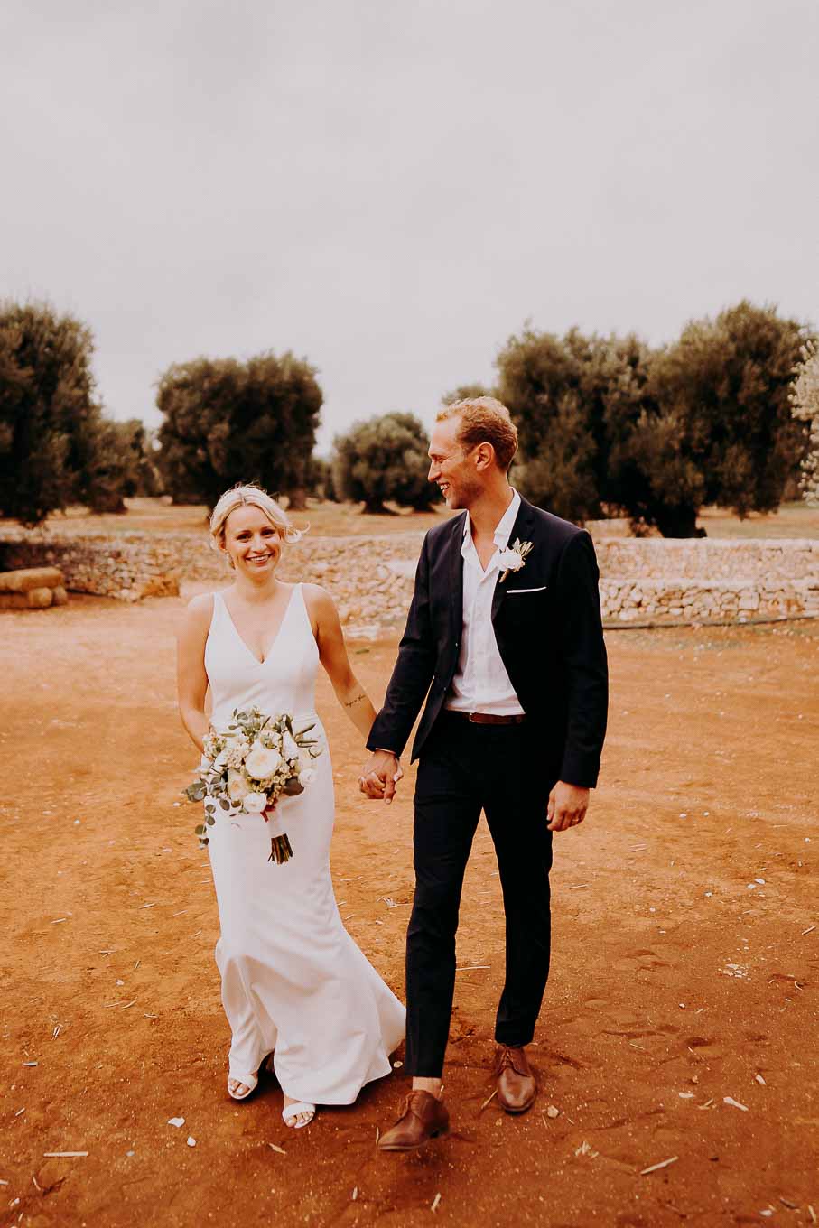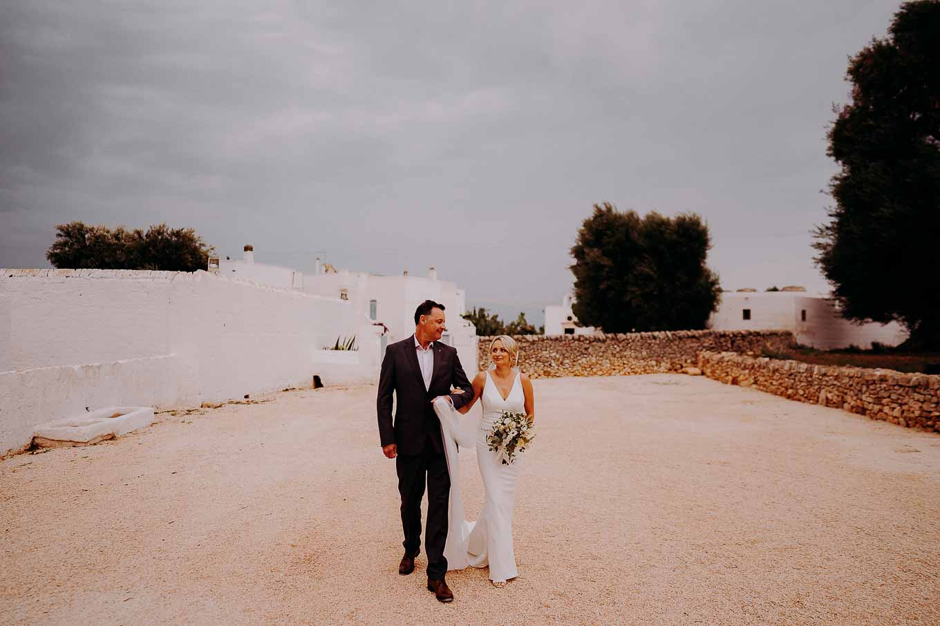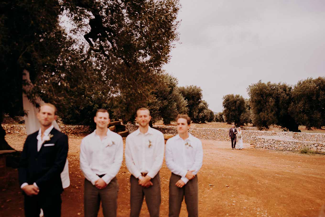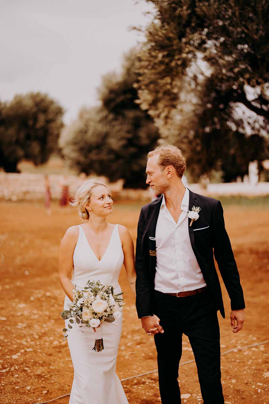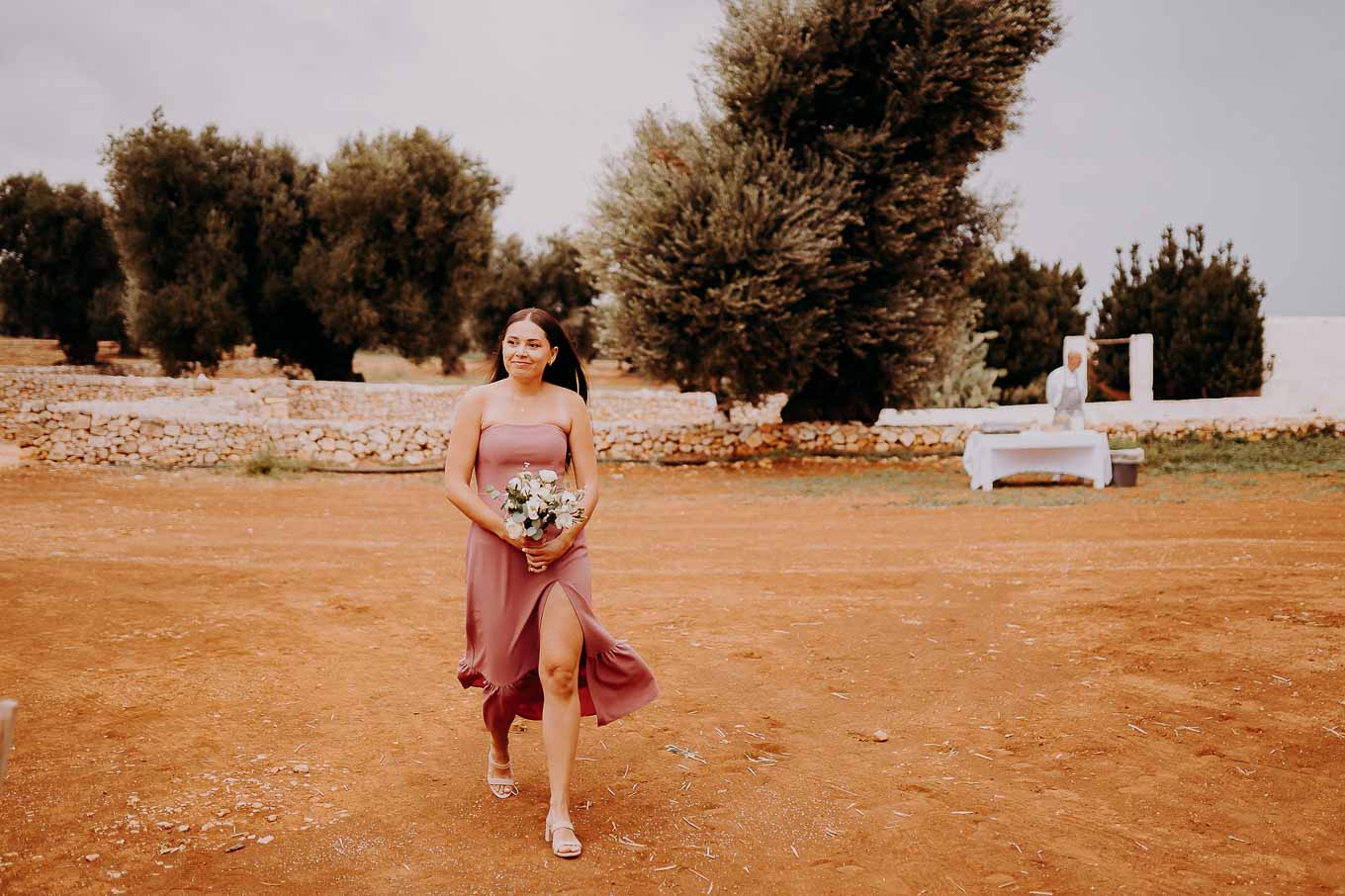 Dopo la cerimonia, gli sposi si sono concessi una passeggiata tra gli ulivi secolari della masseria, immortalando momenti indimenticabili al tramonto. La luce calda e dorata della sera, tipica della Puglia, ha reso ogni scatto unico e suggestivo.