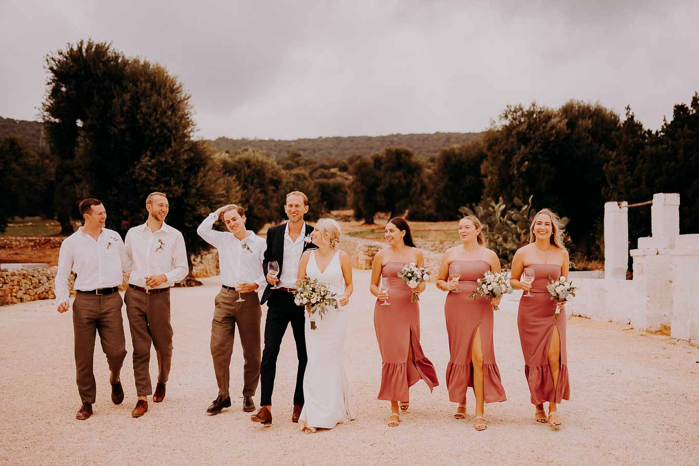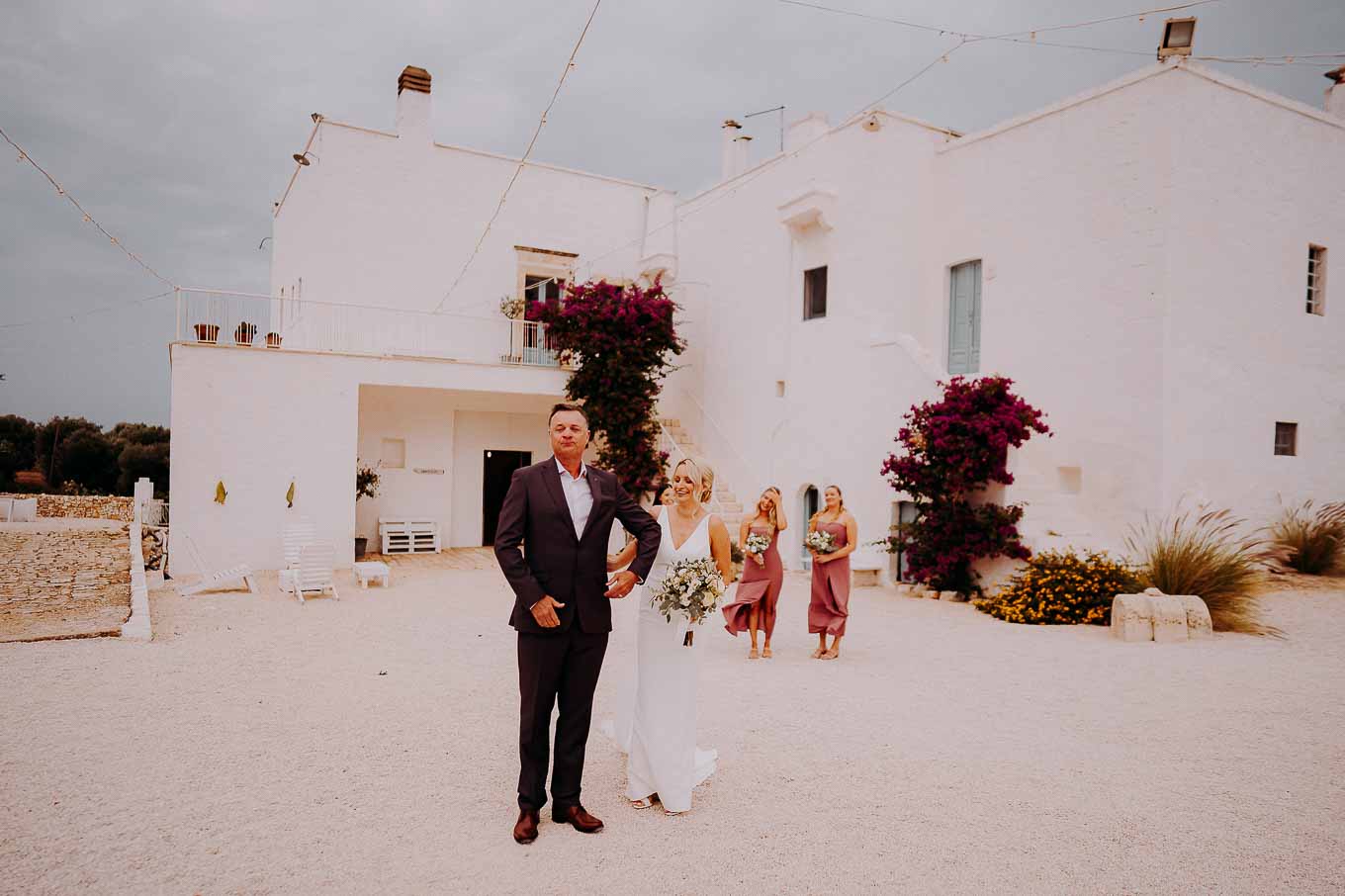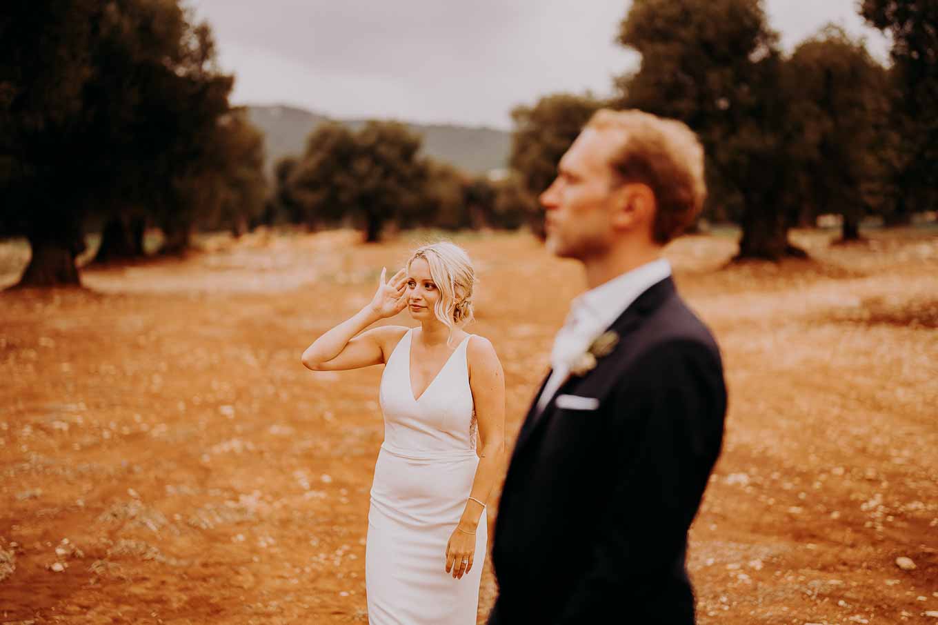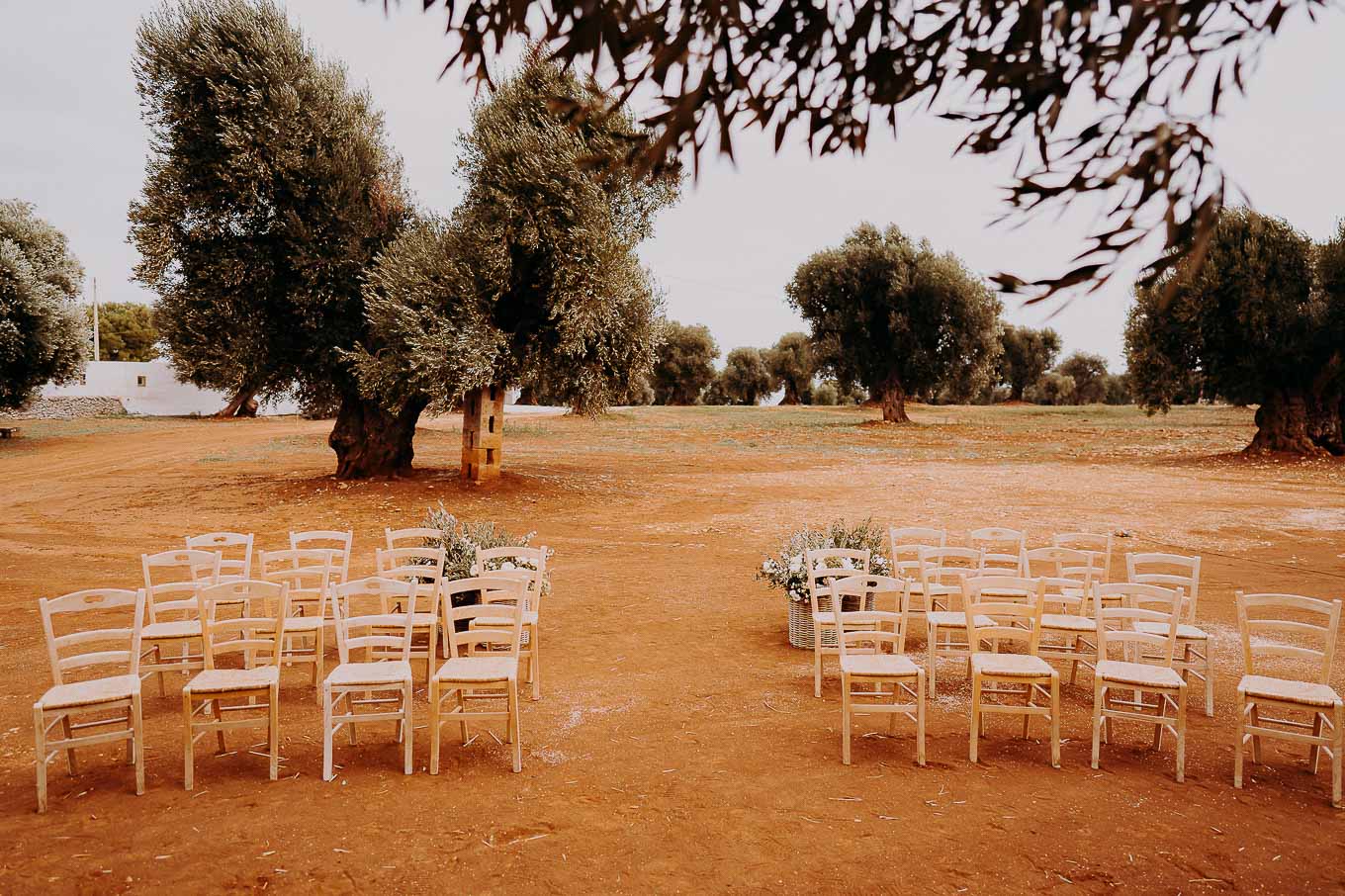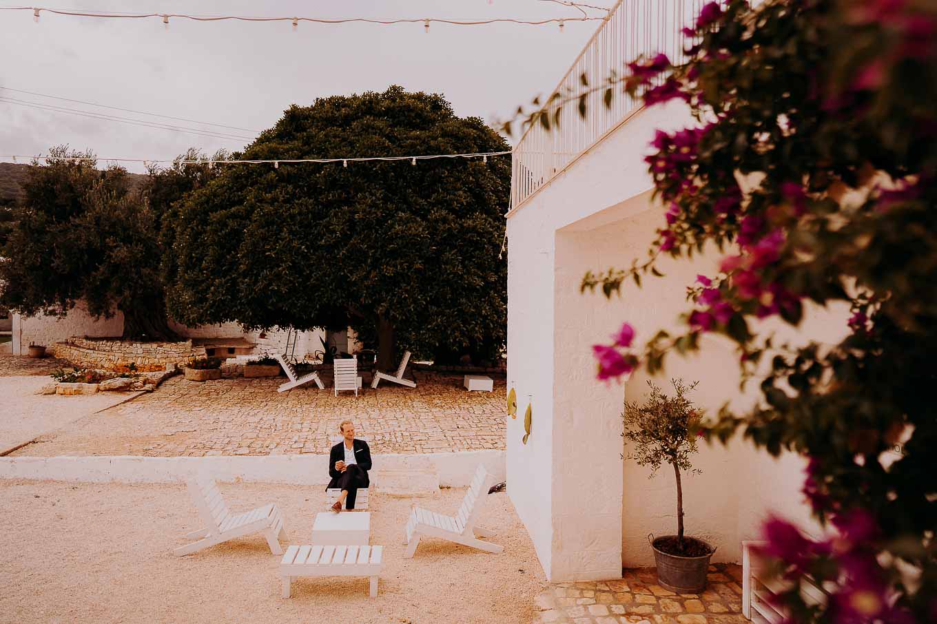 Dopo la cerimonia, gli sposi si sono concessi una passeggiata tra gli ulivi secolari della masseria, immortalando momenti indimenticabili al tramonto. La luce calda e dorata della sera, tipica della Puglia, ha reso ogni scatto unico e suggestivo.