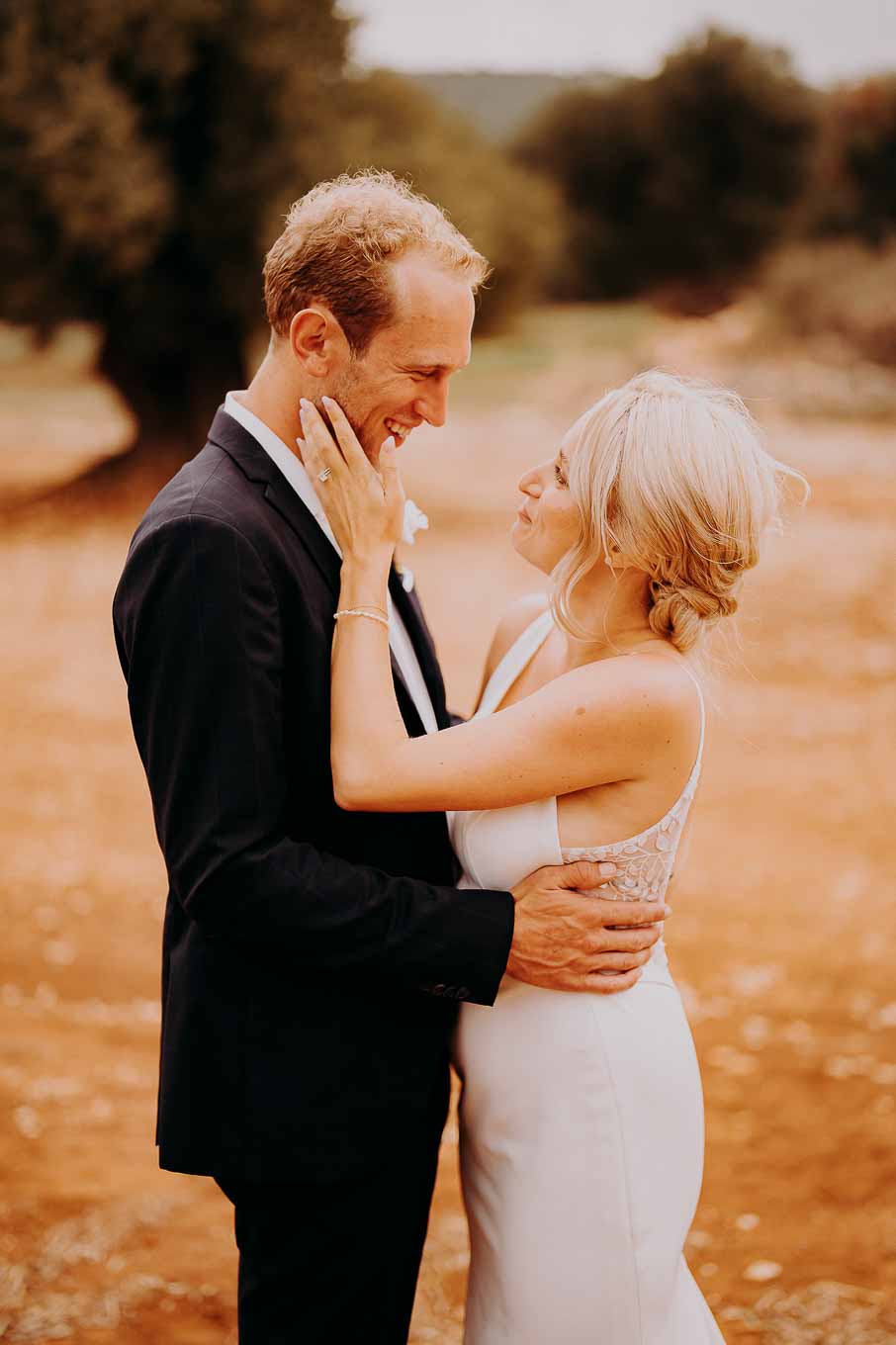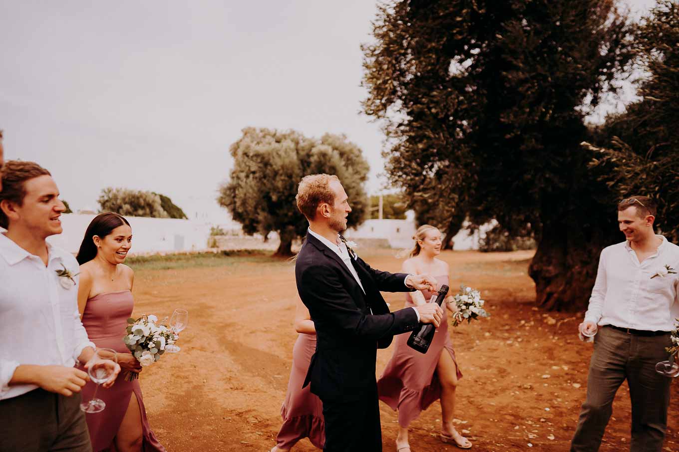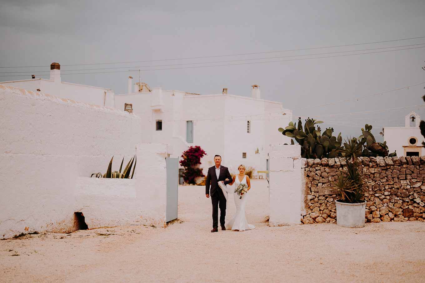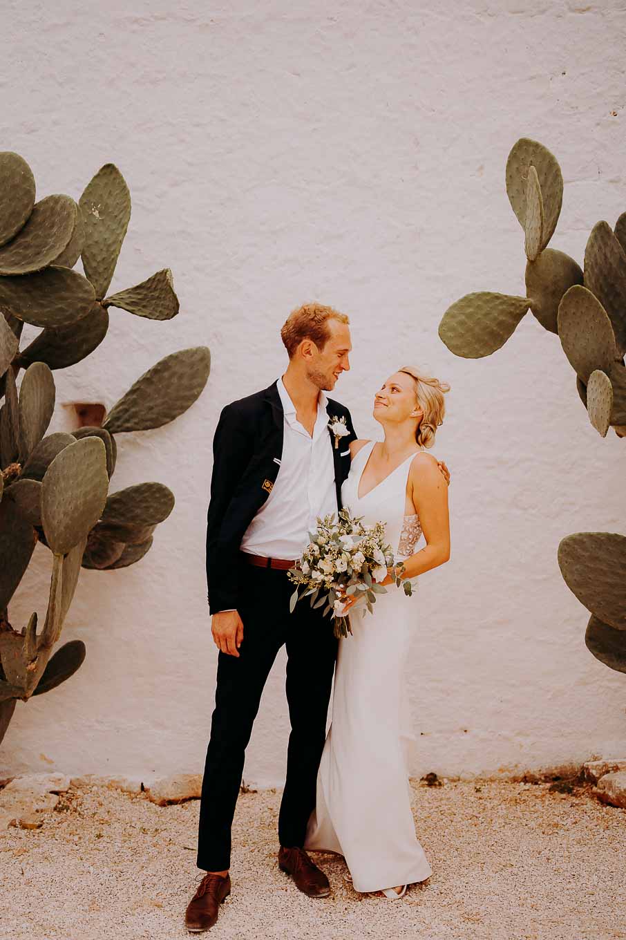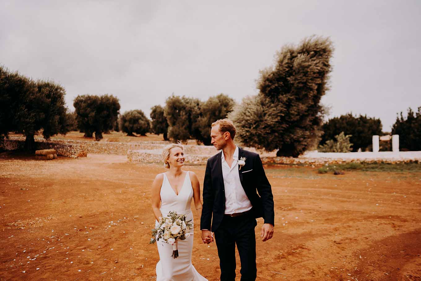 Dopo la cerimonia, gli sposi si sono concessi una passeggiata tra gli ulivi secolari della masseria, immortalando momenti indimenticabili al tramonto. La luce calda e dorata della sera, tipica della Puglia, ha reso ogni scatto unico e suggestivo.