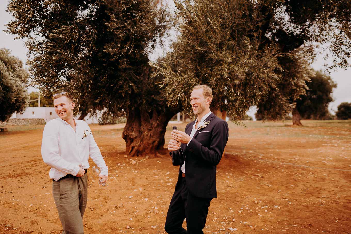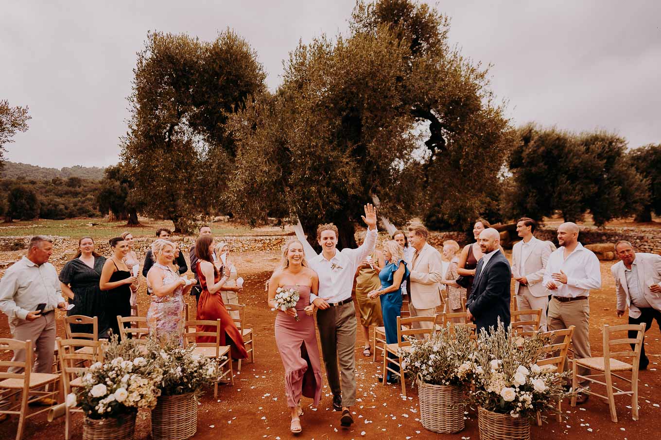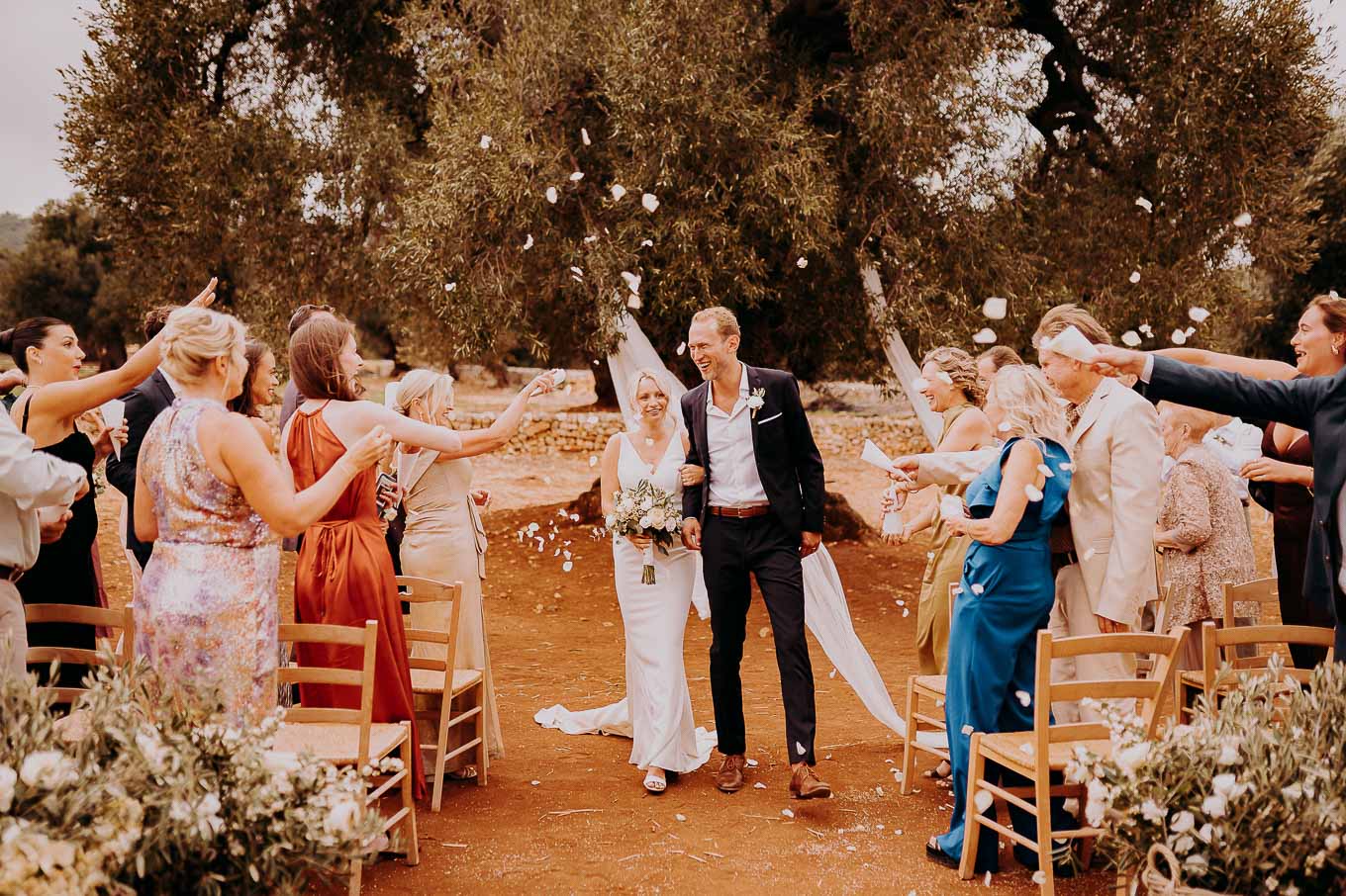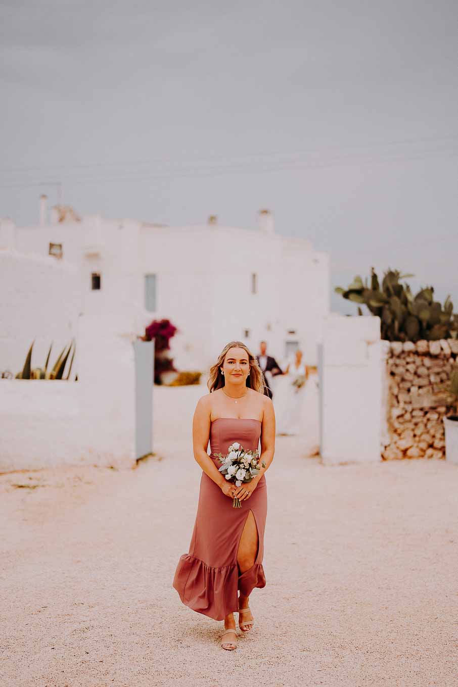 Dopo la cerimonia, gli sposi si sono concessi una passeggiata tra gli ulivi secolari della masseria, immortalando momenti indimenticabili al tramonto. La luce calda e dorata della sera, tipica della Puglia, ha reso ogni scatto unico e suggestivo.