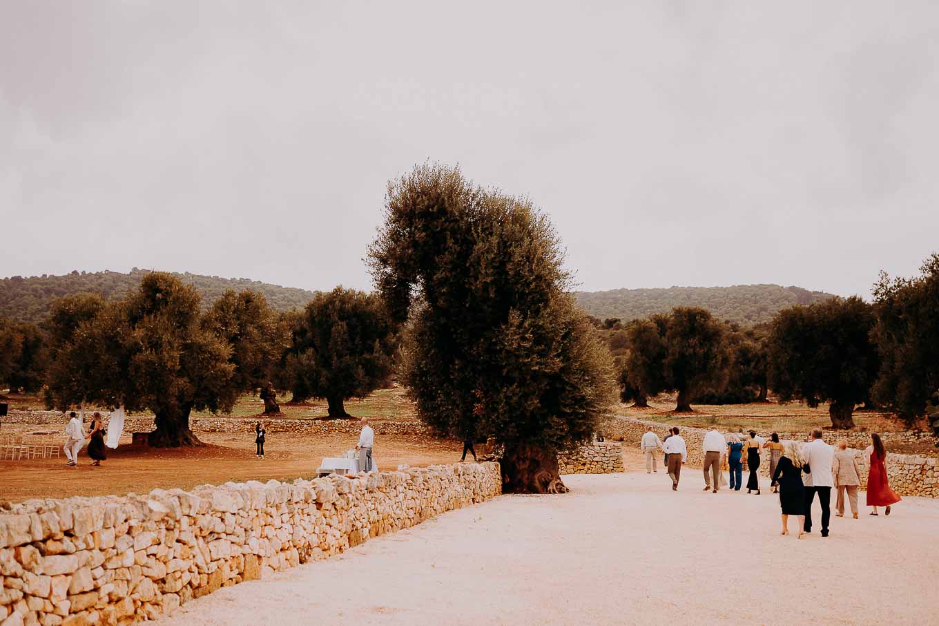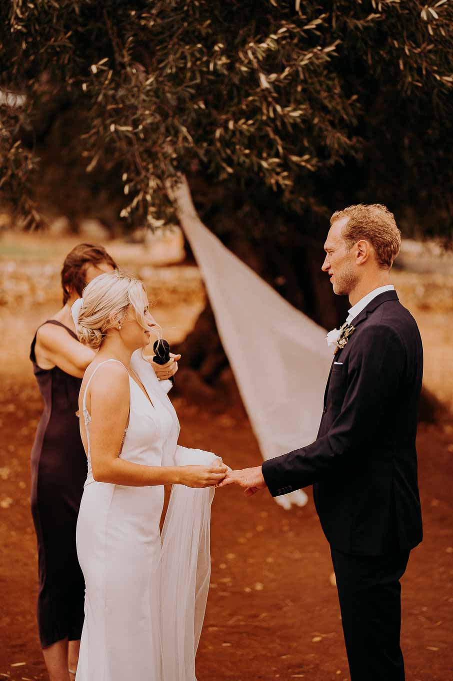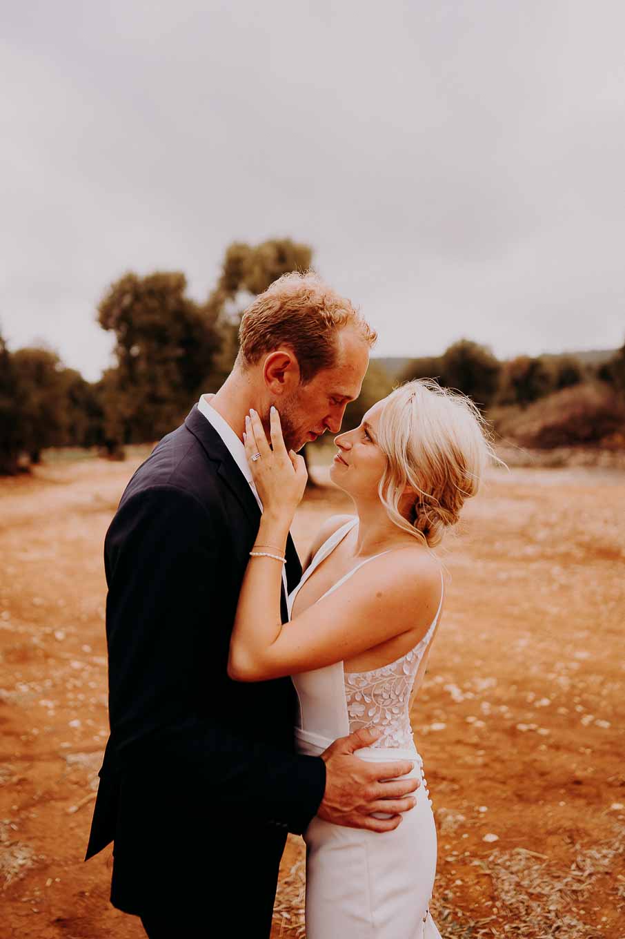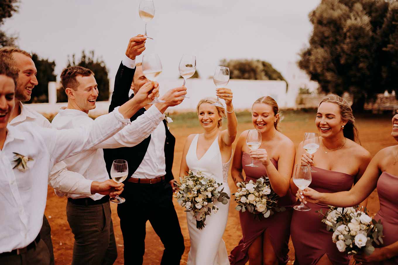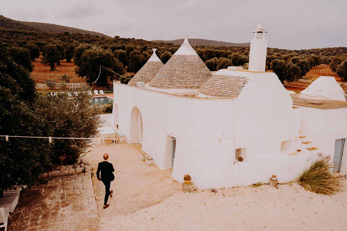 Dopo la cerimonia, gli sposi si sono concessi una passeggiata tra gli ulivi secolari della masseria, immortalando momenti indimenticabili al tramonto. La luce calda e dorata della sera, tipica della Puglia, ha reso ogni scatto unico e suggestivo.