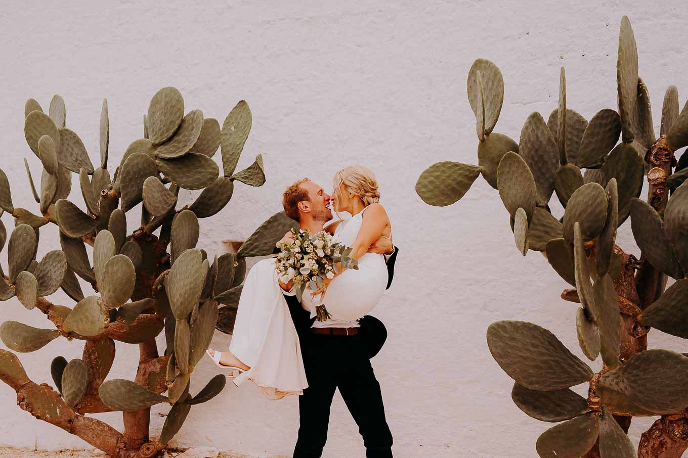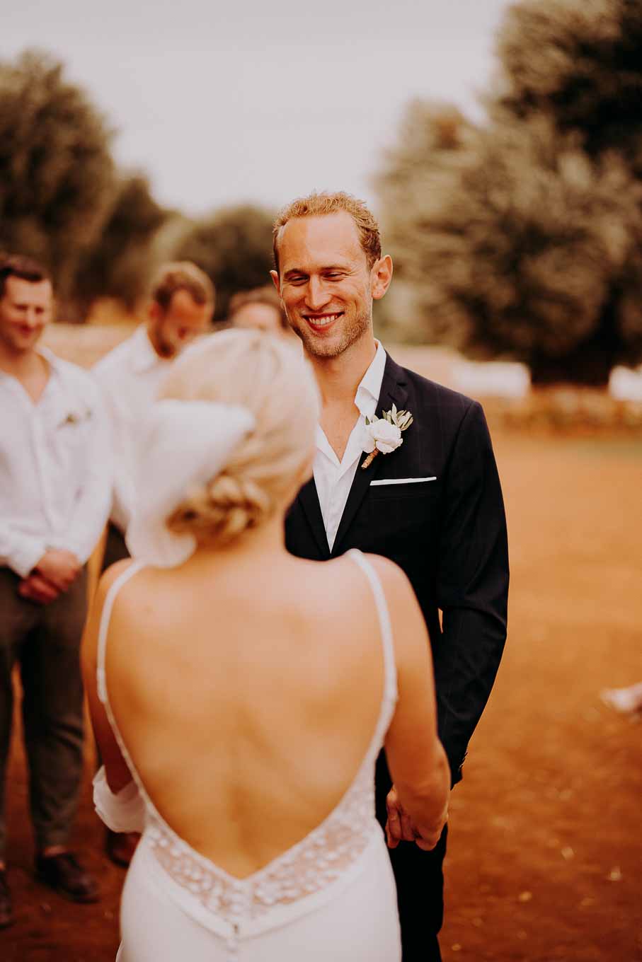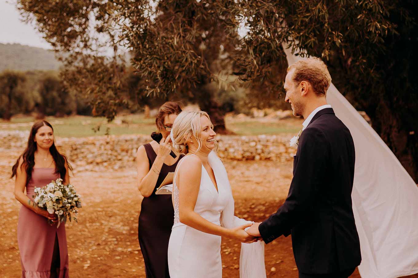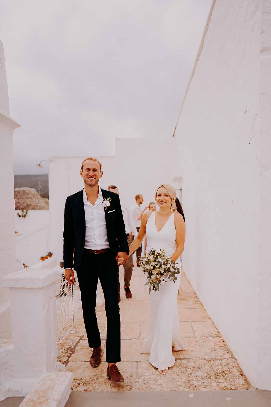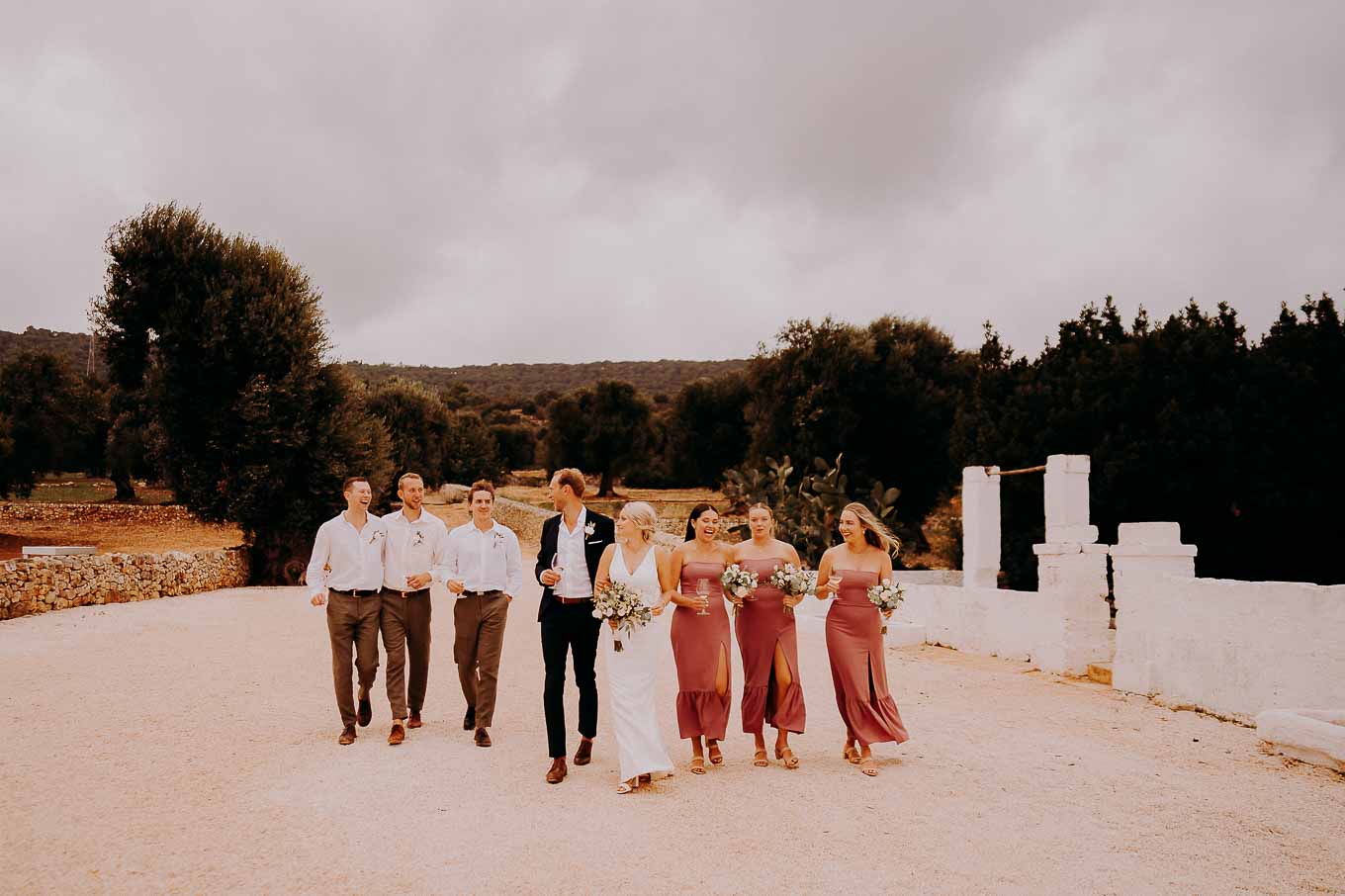 Dopo la cerimonia, gli sposi si sono concessi una passeggiata tra gli ulivi secolari della masseria, immortalando momenti indimenticabili al tramonto. La luce calda e dorata della sera, tipica della Puglia, ha reso ogni scatto unico e suggestivo.