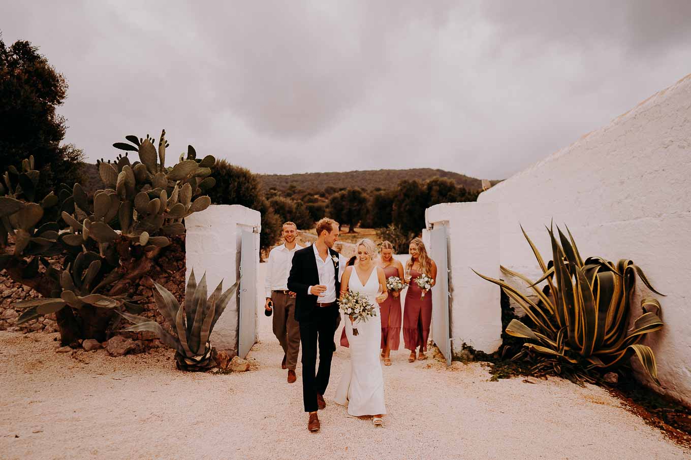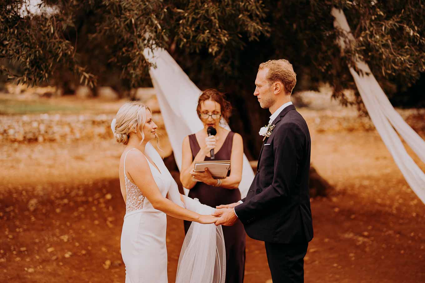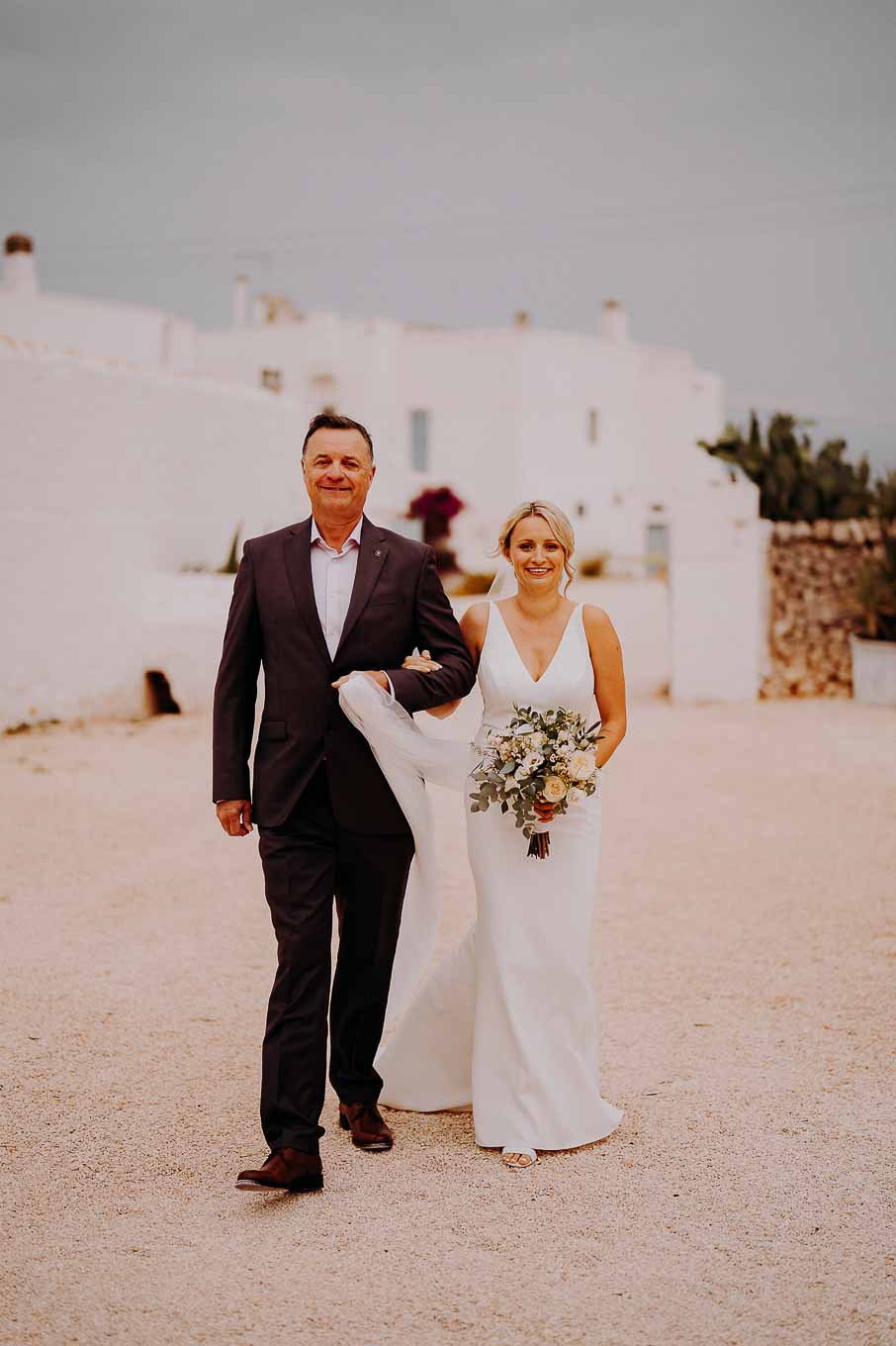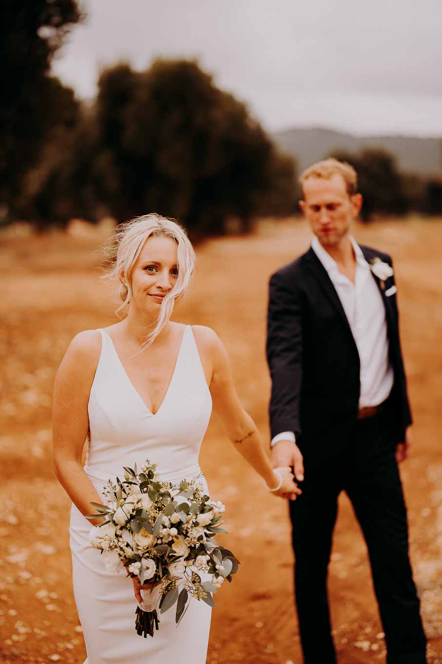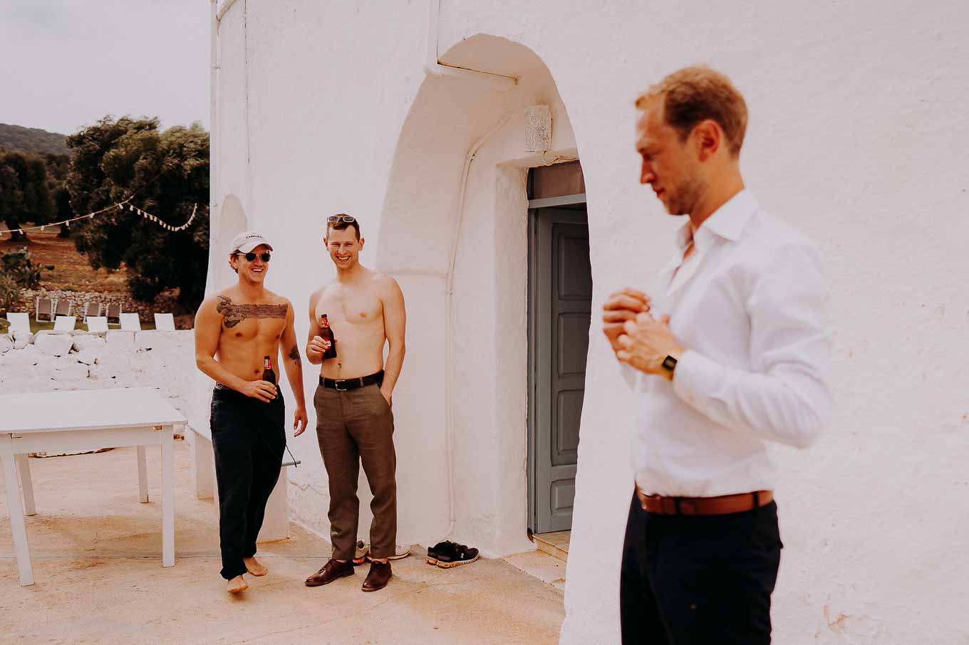 Dopo la cerimonia, gli sposi si sono concessi una passeggiata tra gli ulivi secolari della masseria, immortalando momenti indimenticabili al tramonto. La luce calda e dorata della sera, tipica della Puglia, ha reso ogni scatto unico e suggestivo.