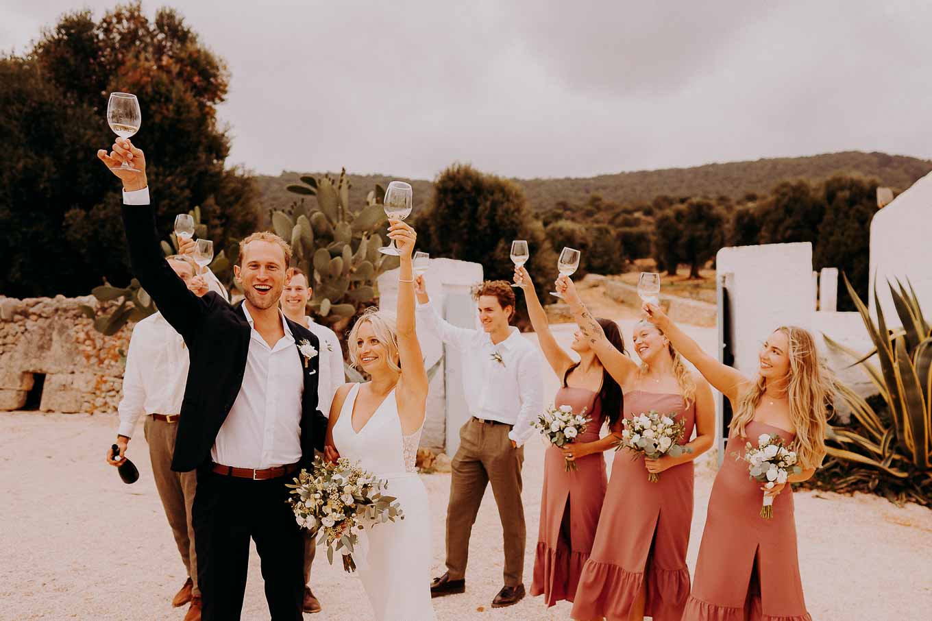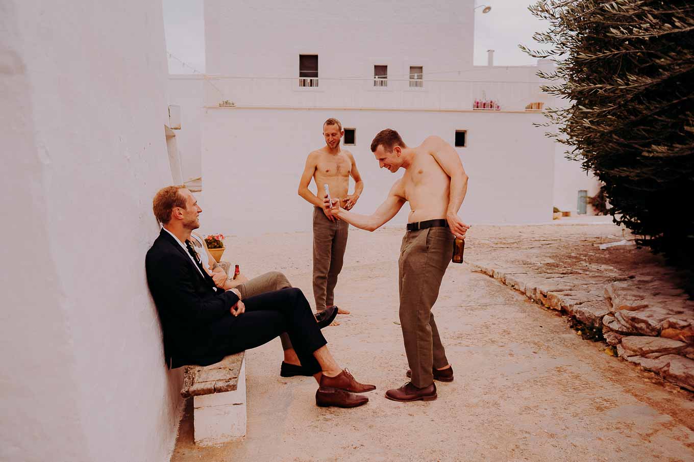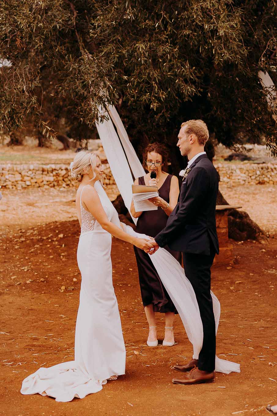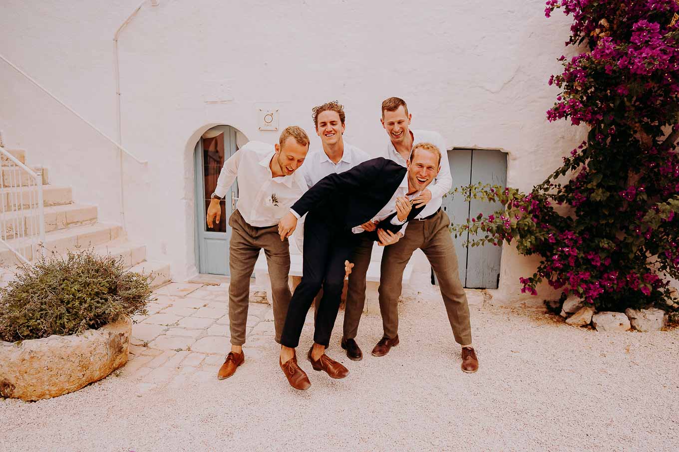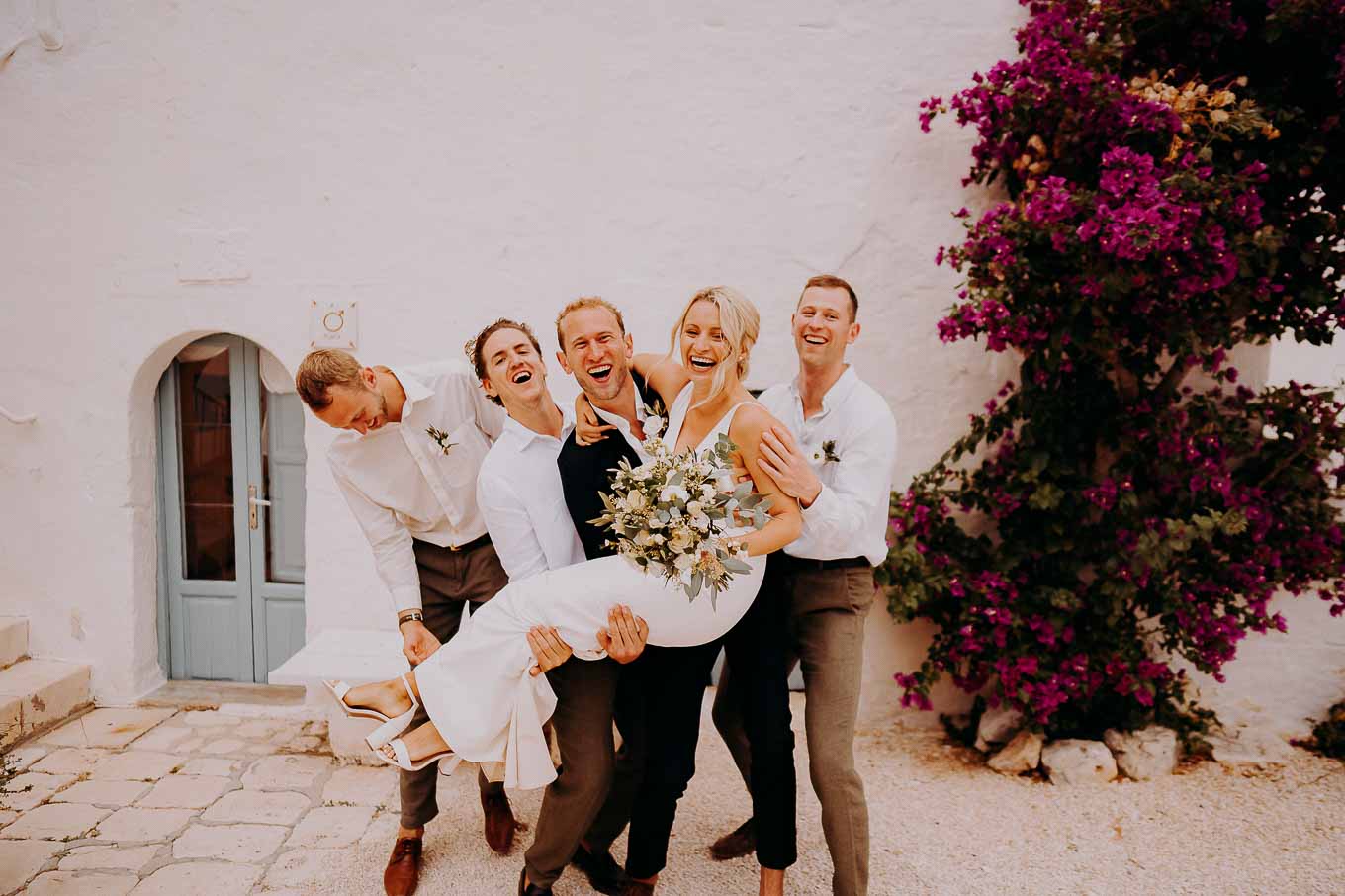 Dopo la cerimonia, gli sposi si sono concessi una passeggiata tra gli ulivi secolari della masseria, immortalando momenti indimenticabili al tramonto. La luce calda e dorata della sera, tipica della Puglia, ha reso ogni scatto unico e suggestivo.