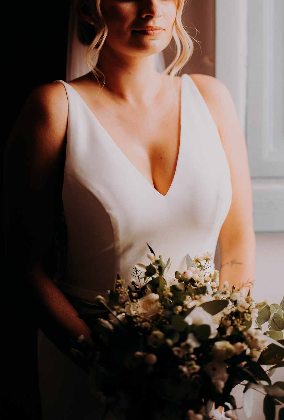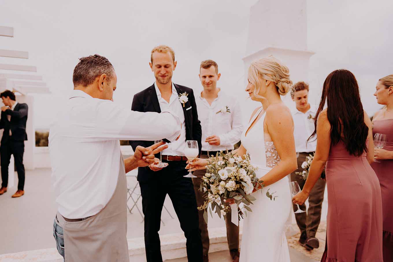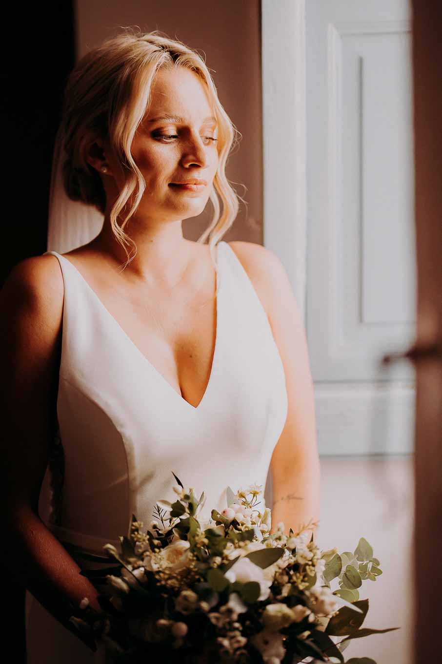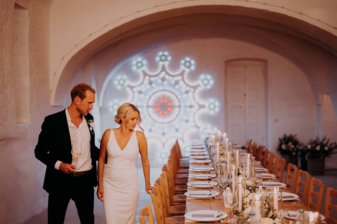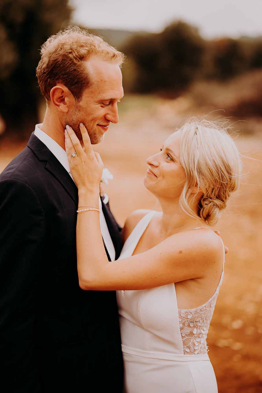 Dopo la cerimonia, gli sposi si sono concessi una passeggiata tra gli ulivi secolari della masseria, immortalando momenti indimenticabili al tramonto. La luce calda e dorata della sera, tipica della Puglia, ha reso ogni scatto unico e suggestivo.