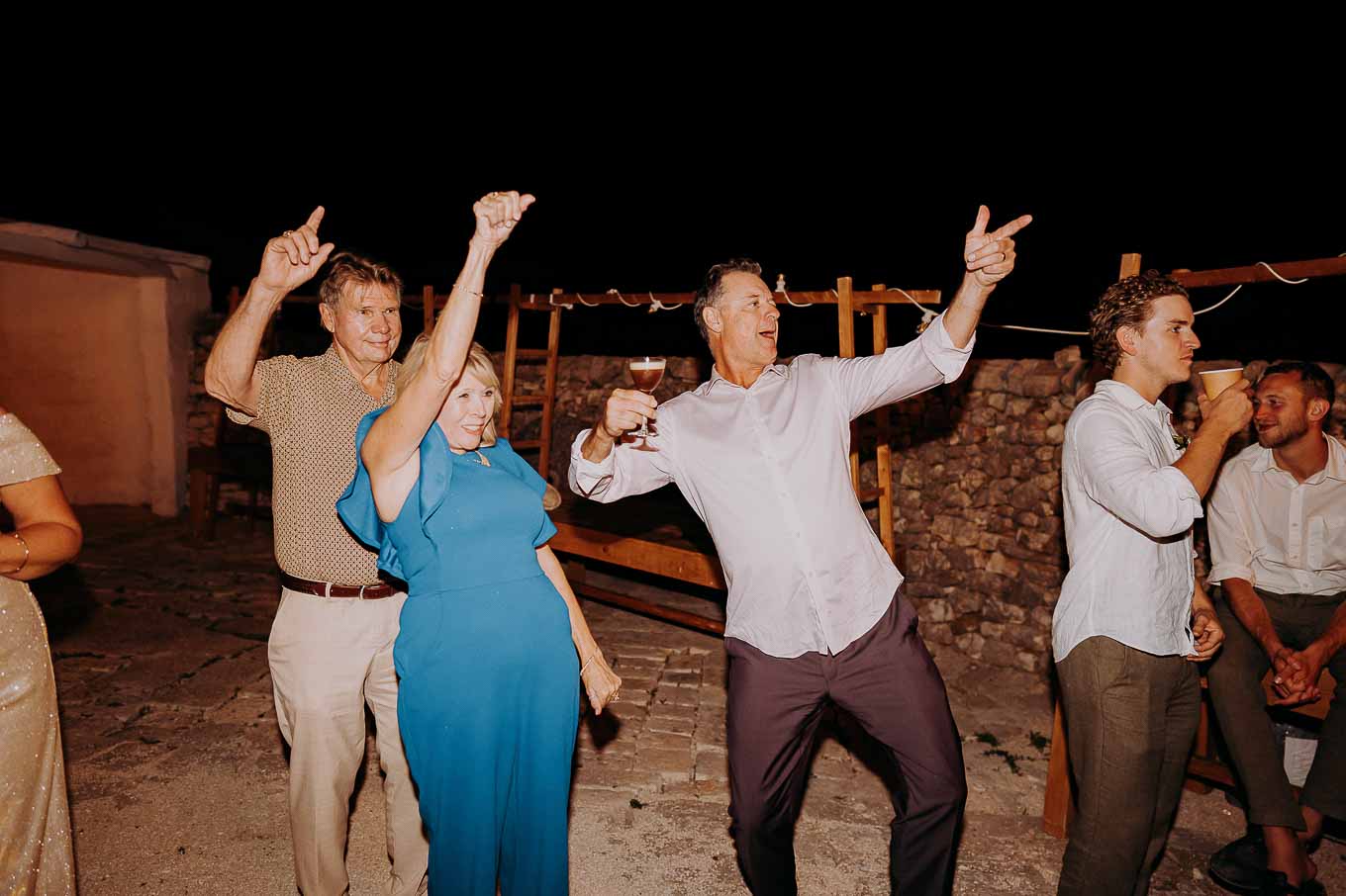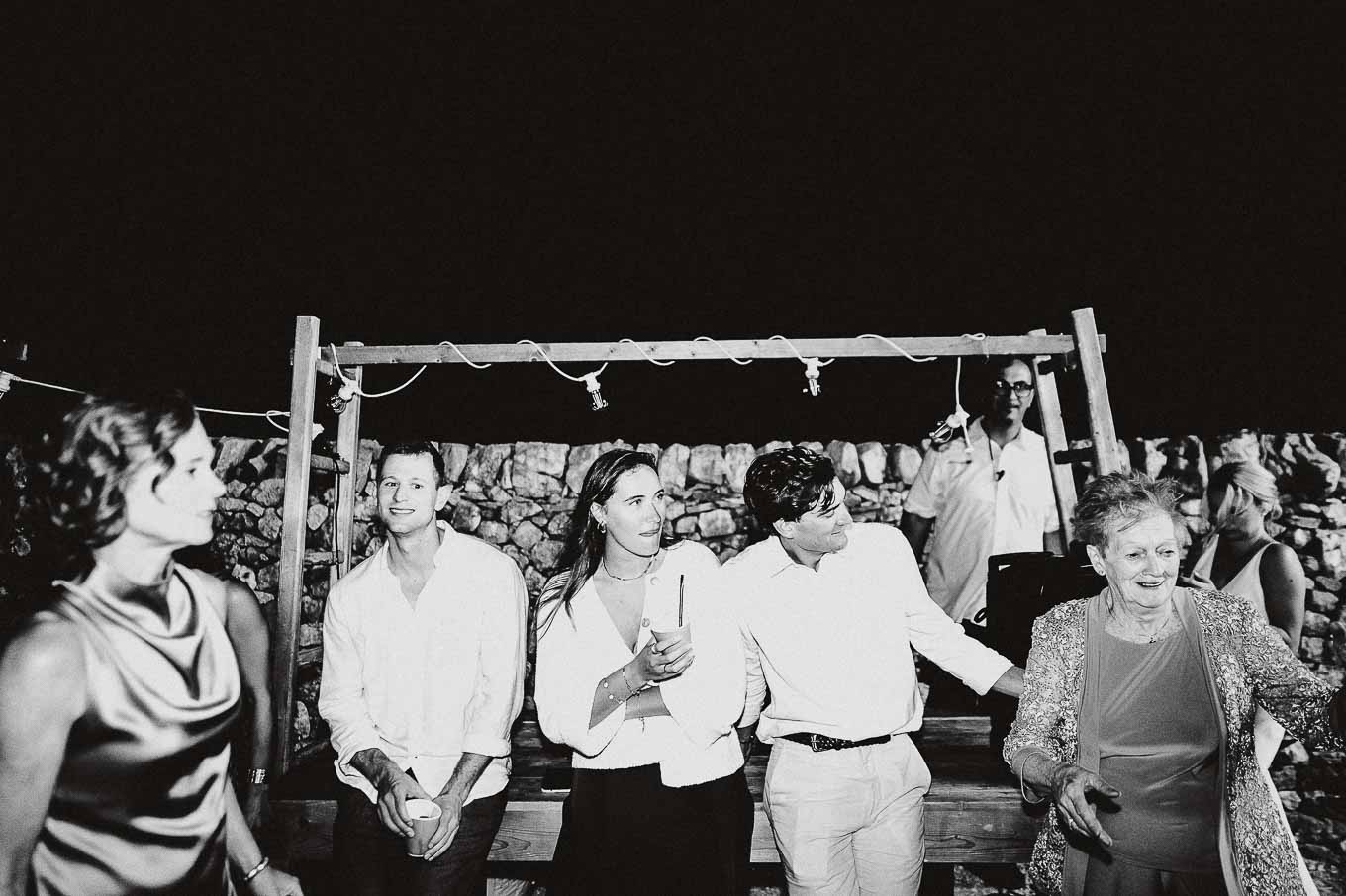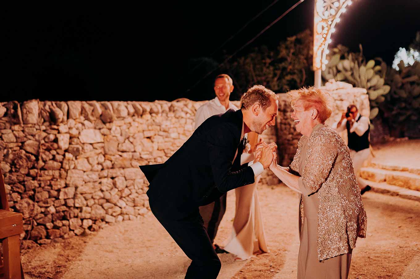 Dopo la cena, la festa è proseguita all'aperto, sotto il cielo stellato della Puglia. Gli amici e i parenti si sono scatenati con balli e risate, creando ricordi indimenticabili in un ambiente che ha saputo combinare tradizione, bellezza e divertimento.