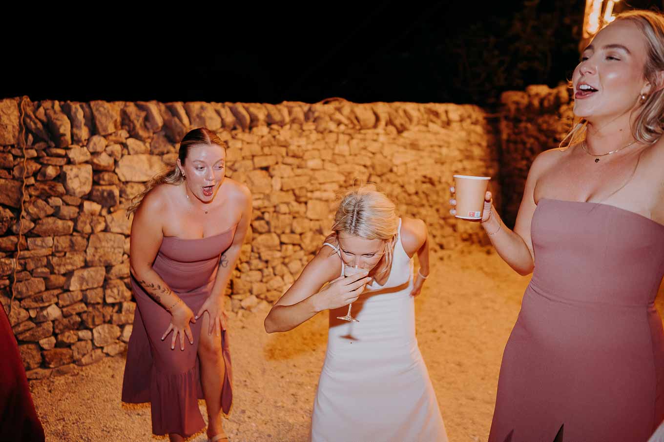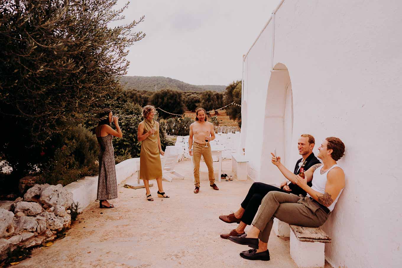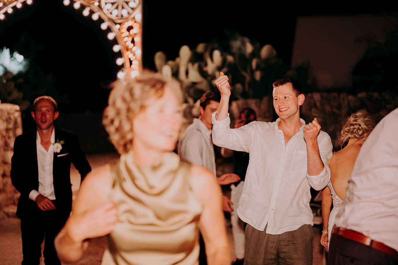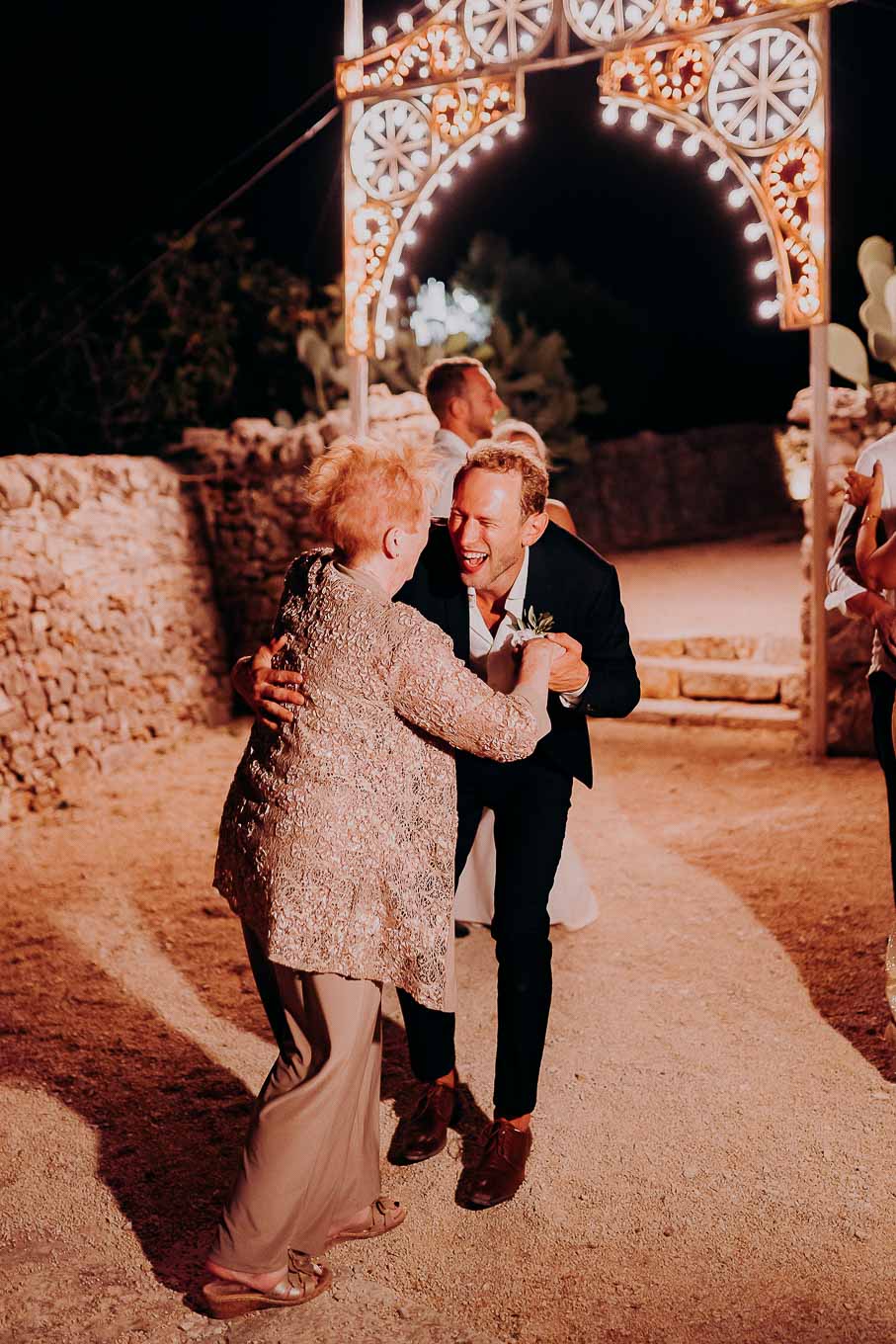 Dopo la cena, la festa è proseguita all'aperto, sotto il cielo stellato della Puglia. Gli amici e i parenti si sono scatenati con balli e risate, creando ricordi indimenticabili in un ambiente che ha saputo combinare tradizione, bellezza e divertimento.