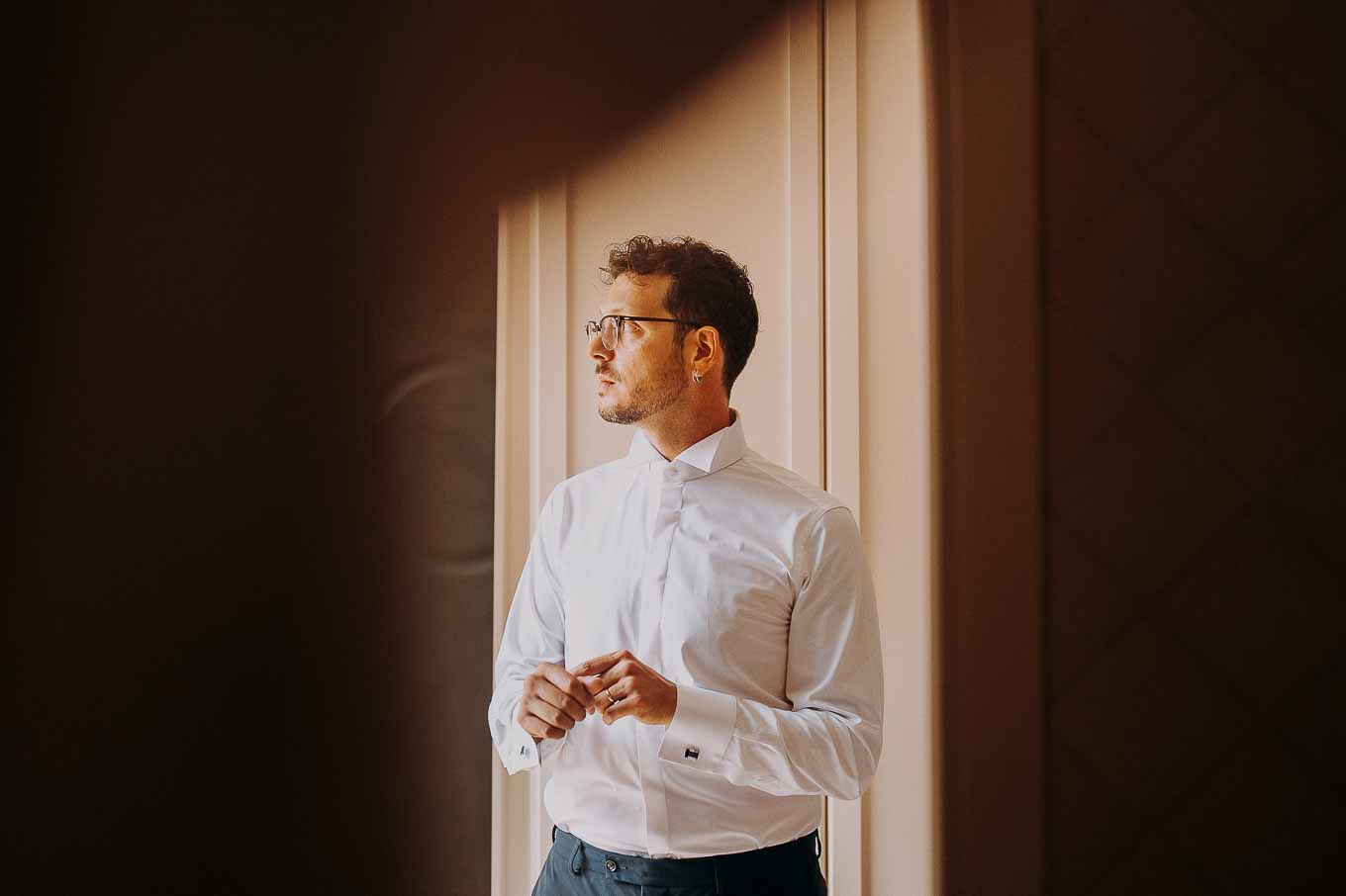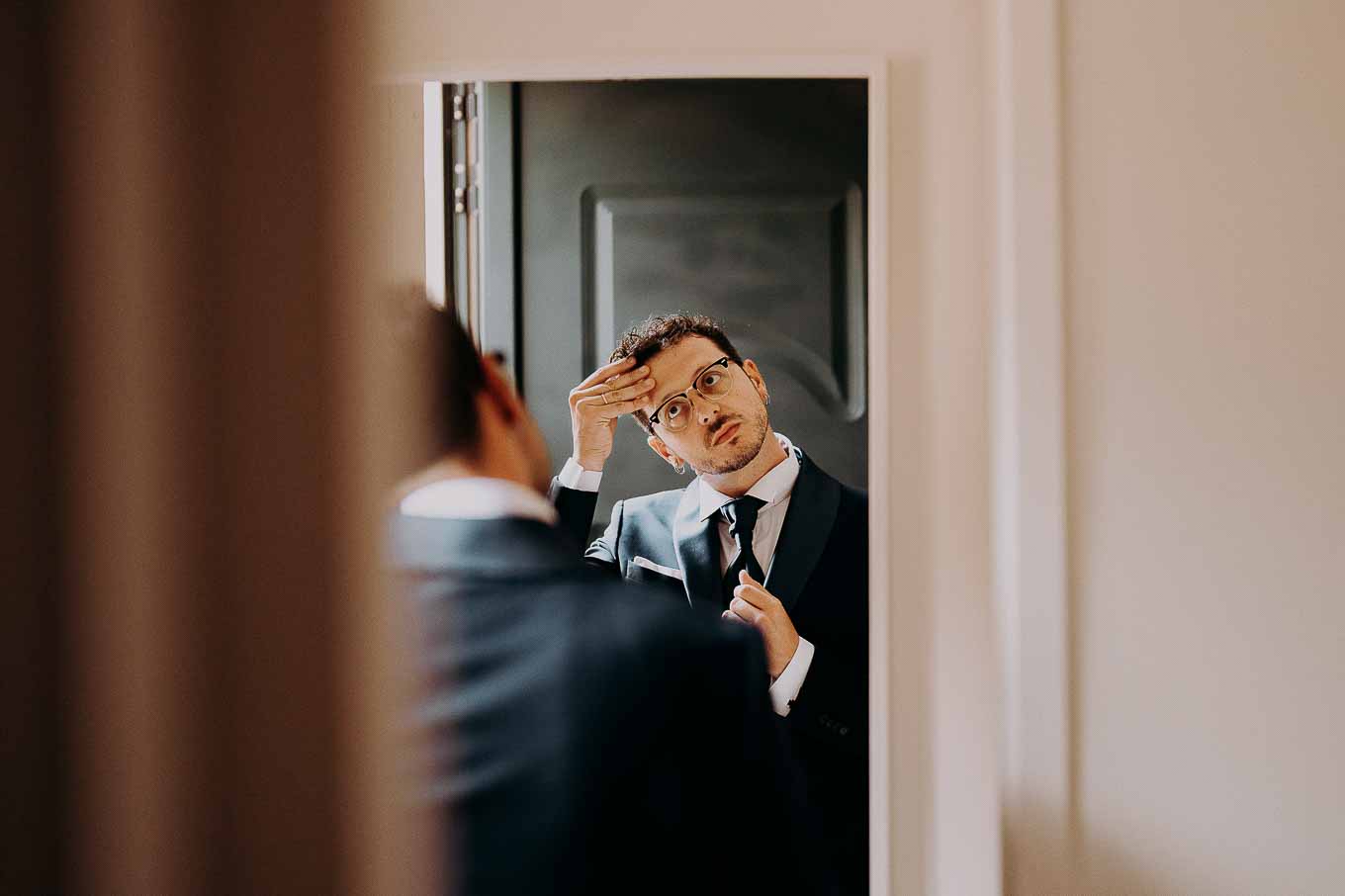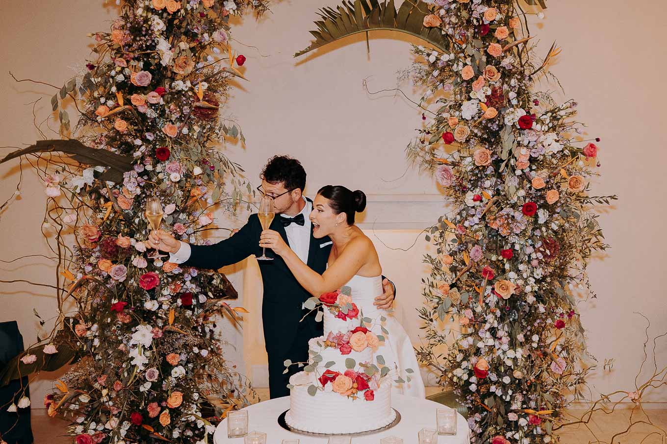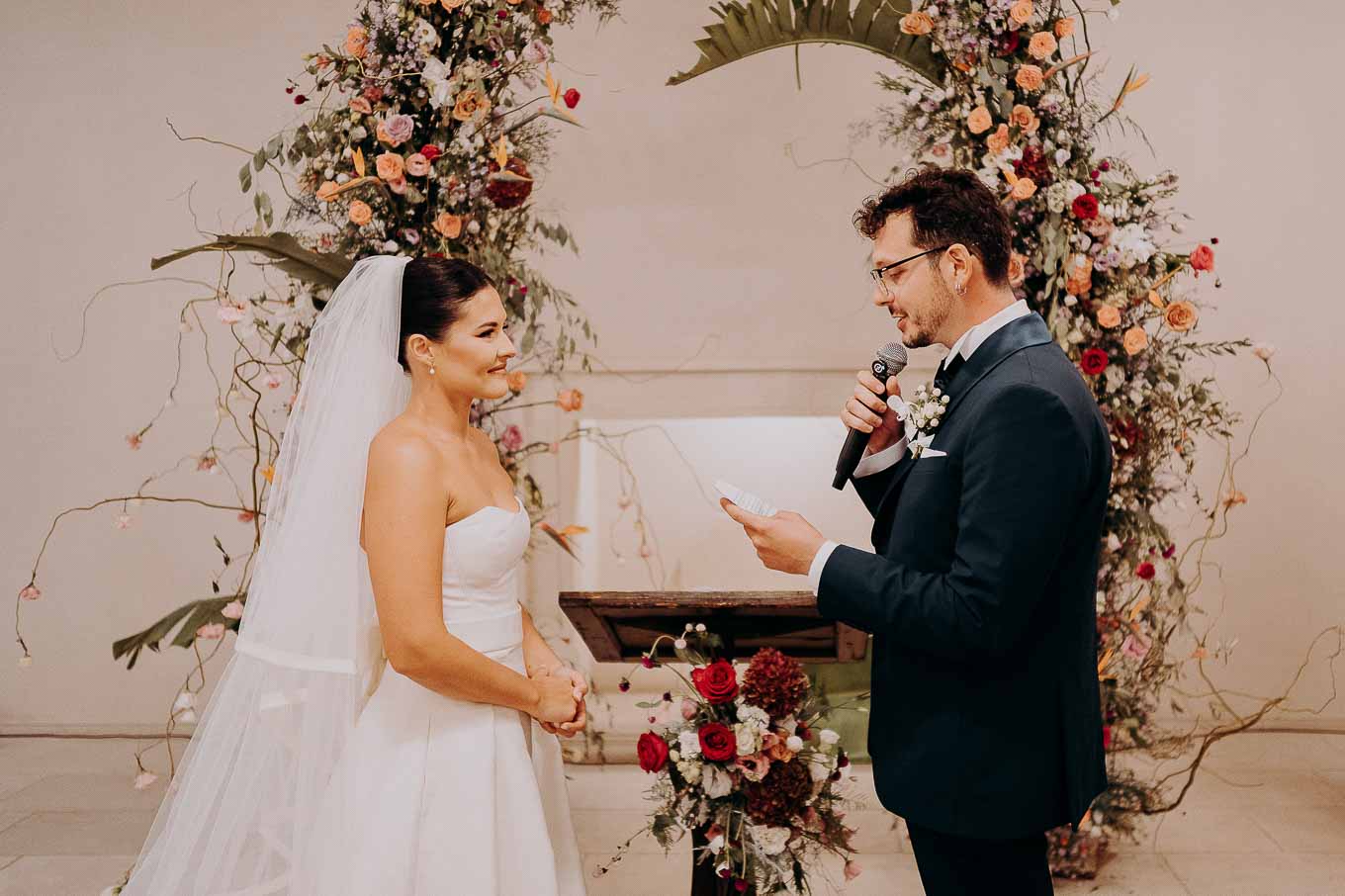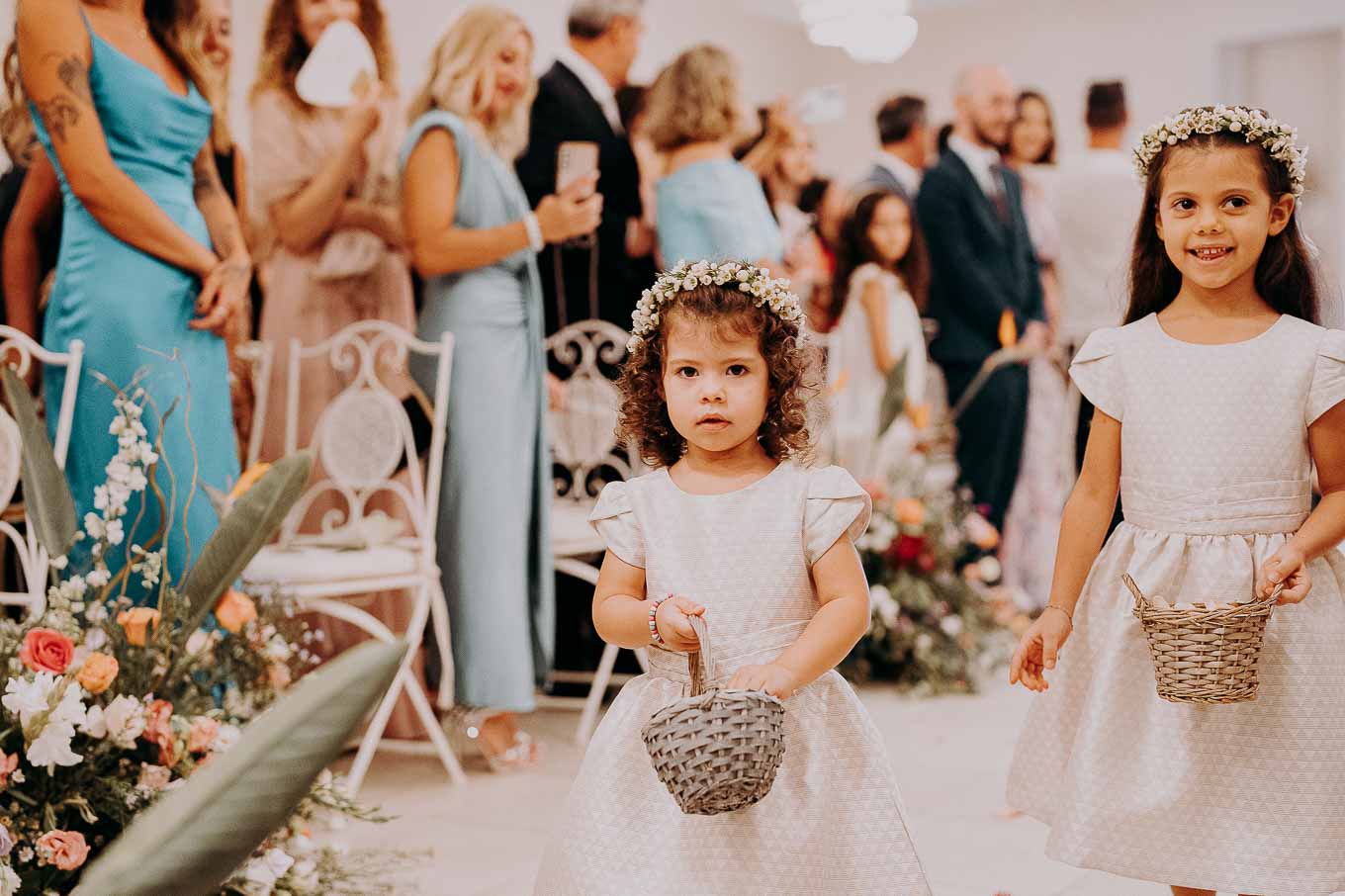 A causa del rischio di pioggia, il rito civile si è svolto all’interno della tenuta. Un dettaglio che, lontano dal rovinare l’atmosfera, ha contribuito a creare un ambiente raccolto, intimo e carico di emozione. Ogni sguardo, ogni parola, ogni gesto è stato amplificato dalla bellezza semplice e sincera di quel momento.