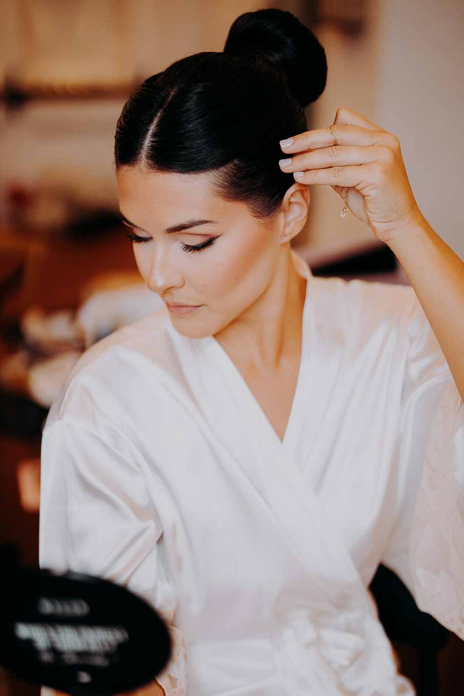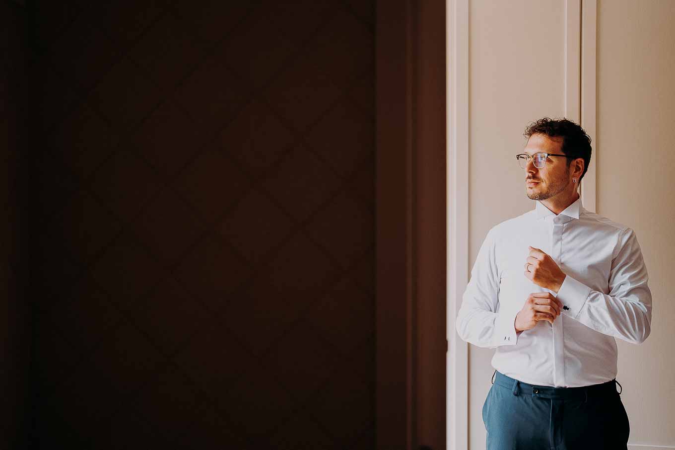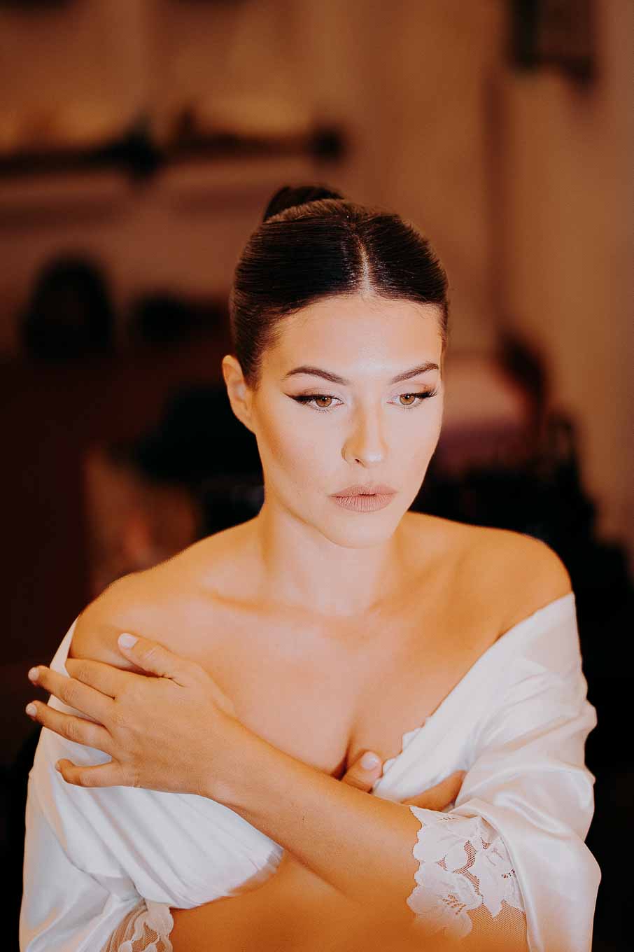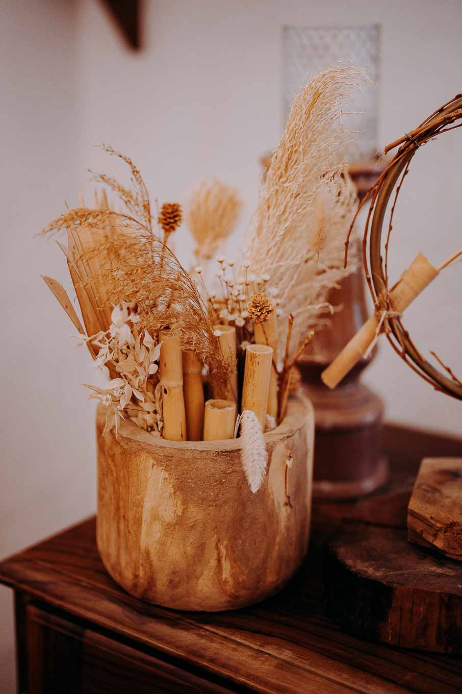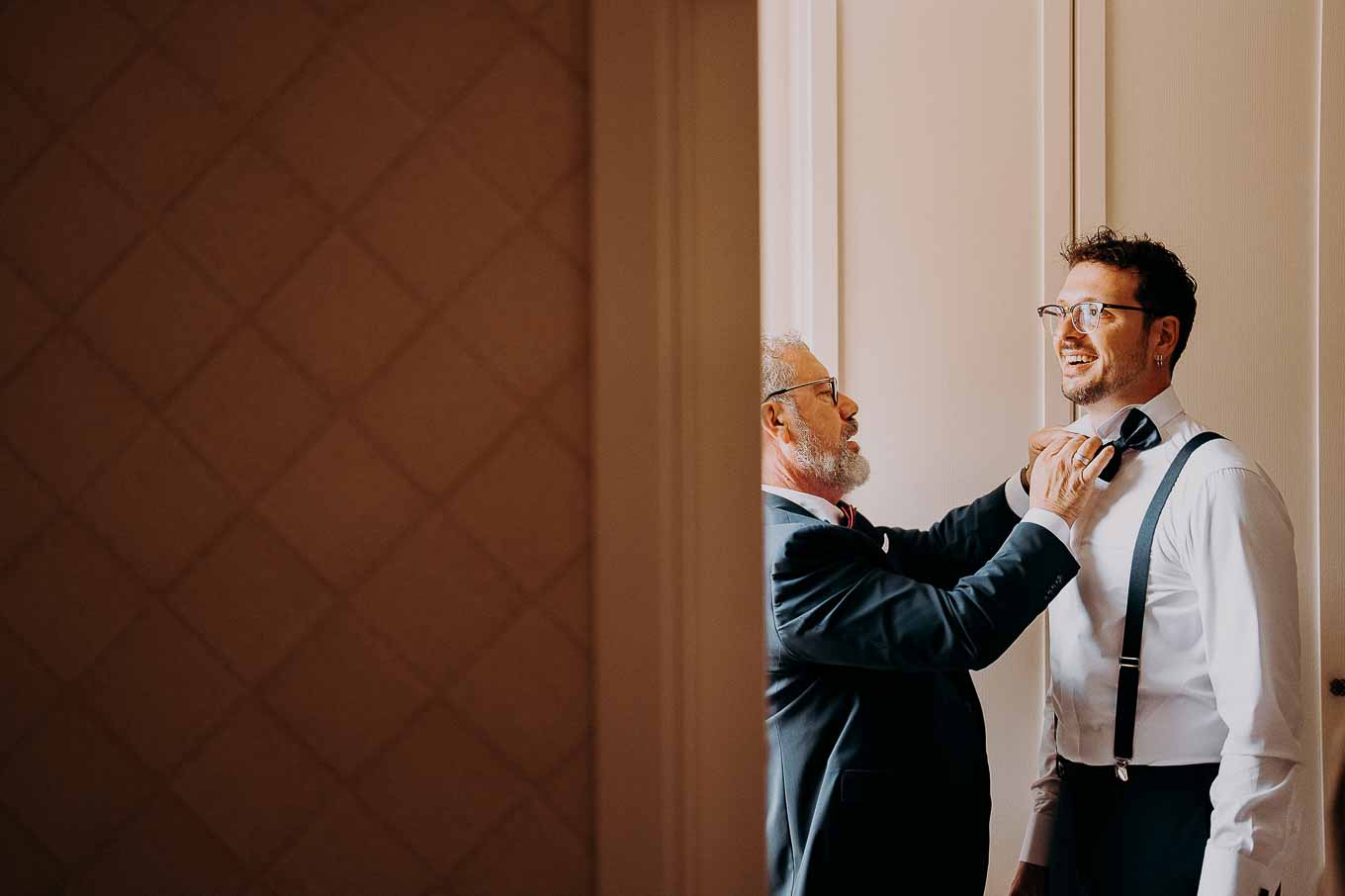 A causa del rischio di pioggia, il rito civile si è svolto all’interno della tenuta. Un dettaglio che, lontano dal rovinare l’atmosfera, ha contribuito a creare un ambiente raccolto, intimo e carico di emozione. Ogni sguardo, ogni parola, ogni gesto è stato amplificato dalla bellezza semplice e sincera di quel momento.