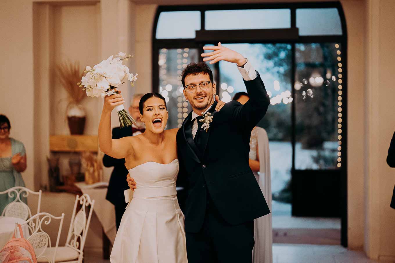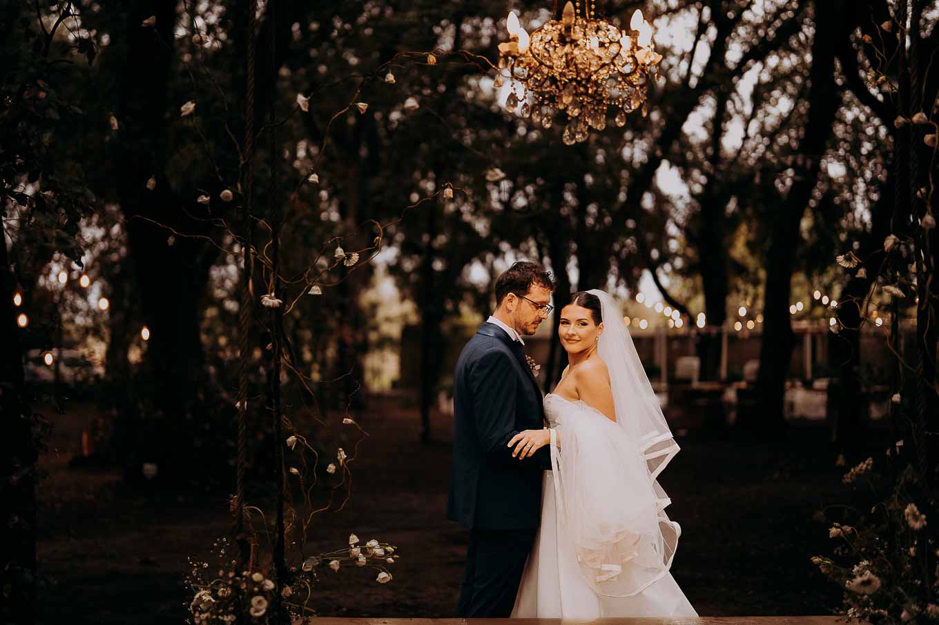 Dopo la cerimonia, gli ospiti sono stati accolti con un elegante rinfresco all’interno della tenuta. Subito dopo, Salvatore e Isabela si sono concessi qualche scatto di coppia, sfruttando ogni angolo della Tenuta Tresca: gli scorci in pietra viva, gli archi tra gli ulivi, le passerelle immerse nel verde e soprattutto il bosco, che ha regalato loro un’atmosfera incantata, quasi fiabesca.