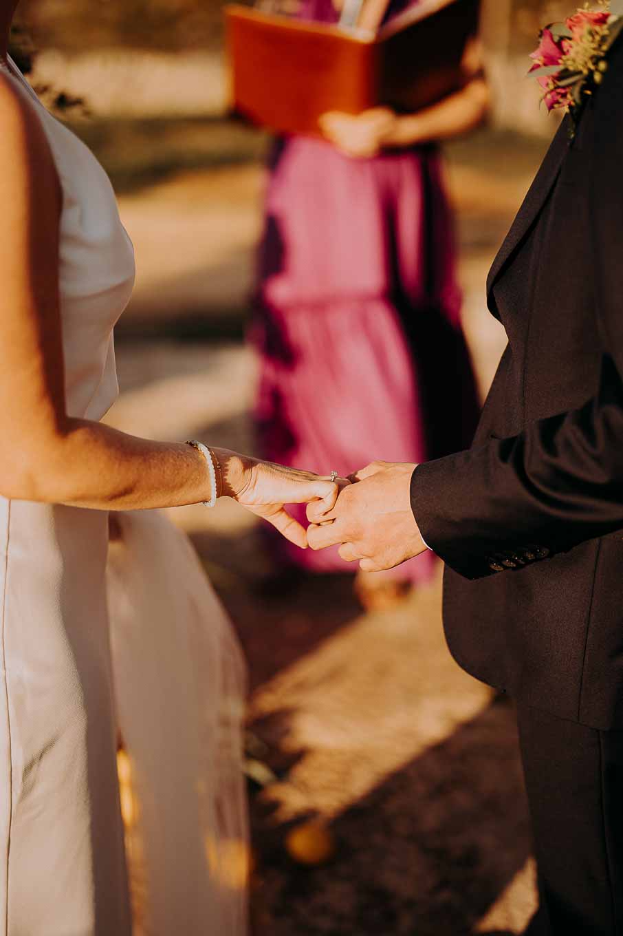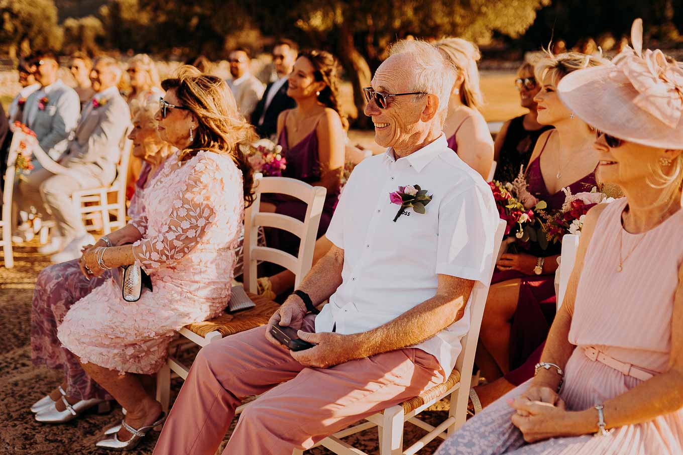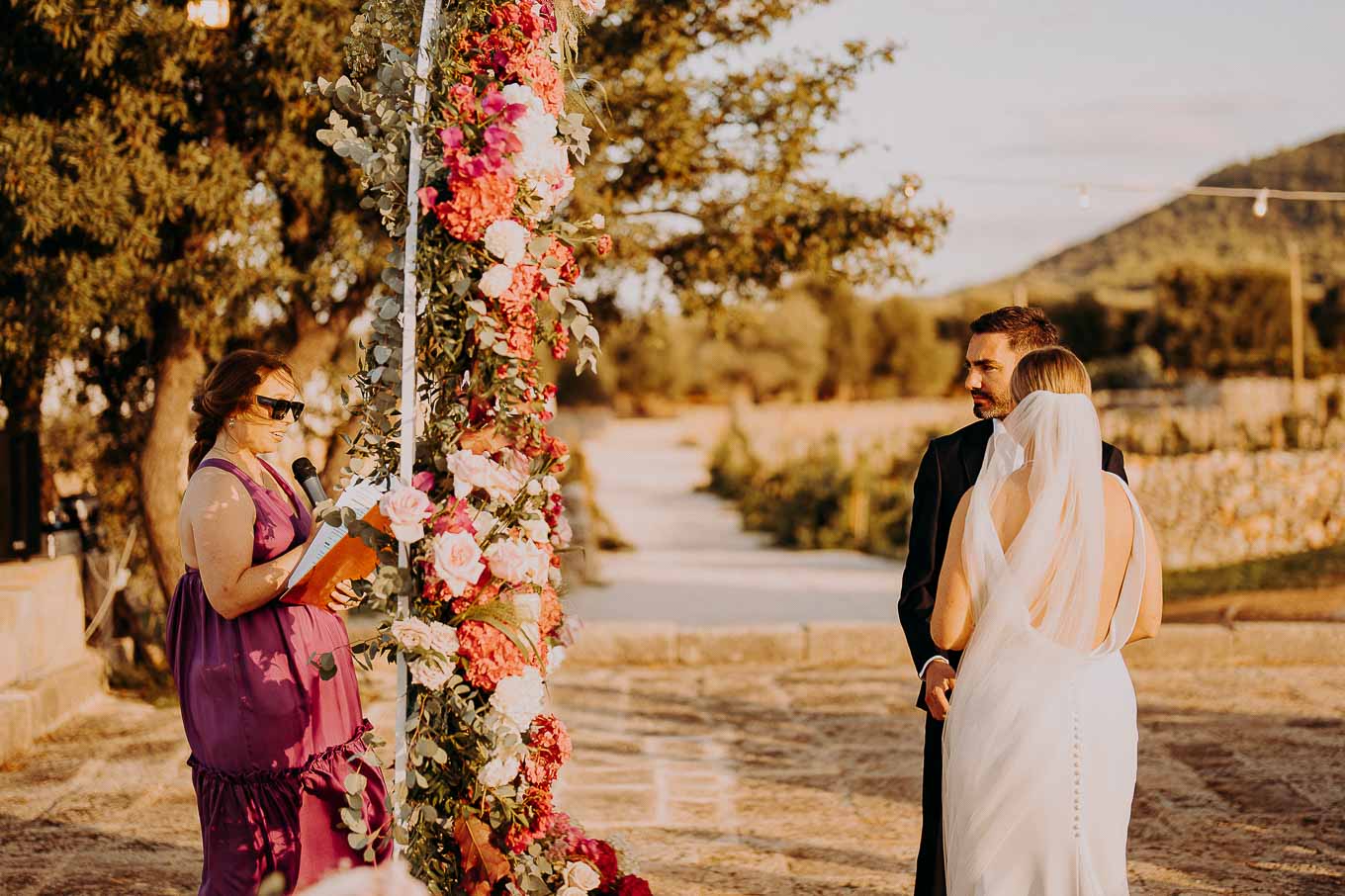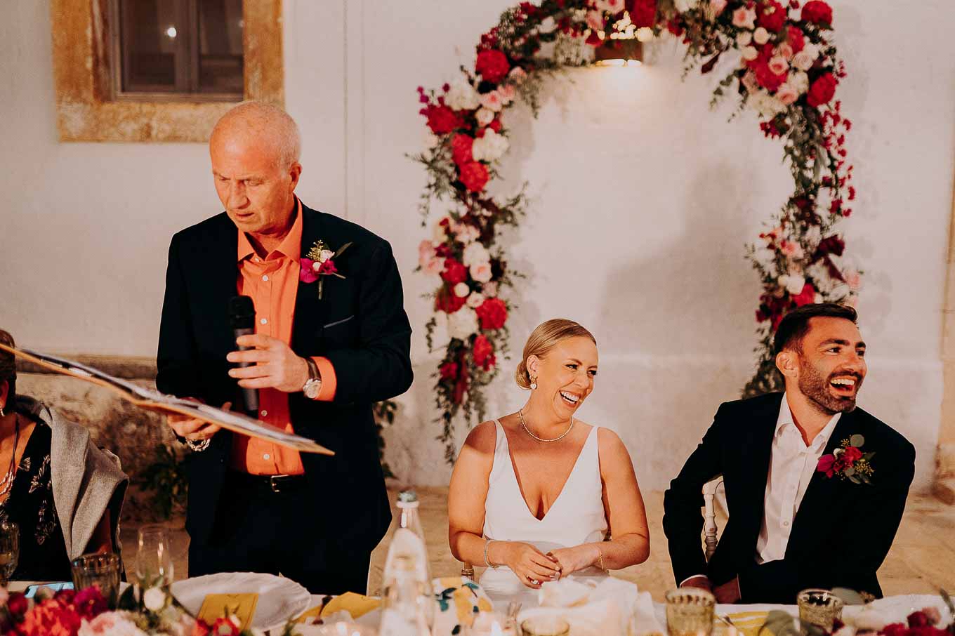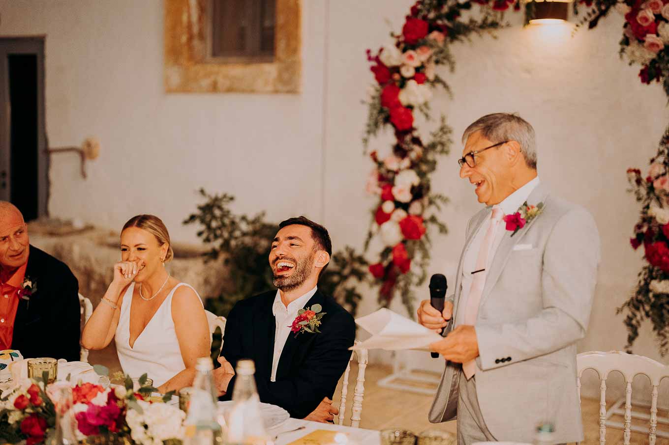 Il rito civile si è svolto all’esterno, a ridosso del tramonto, in uno dei punti più suggestivi della Masseria. Circondati da ulivi monumentali e da una luce dorata che solo la Puglia sa regalare, Aston e Lucy si sono promessi amore eterno in un’atmosfera intima, avvolgente e profondamente autentica. L’emozione era palpabile: la natura, il silenzio rotto solo dalle parole pronunciate e il calore degli affetti più cari hanno creato un momento di rara bellezza.