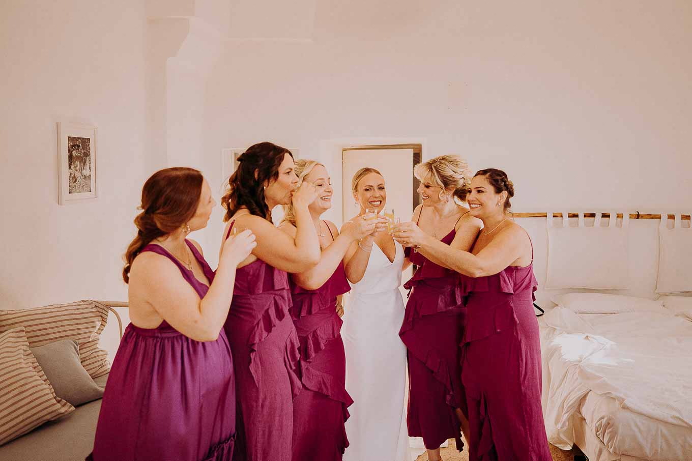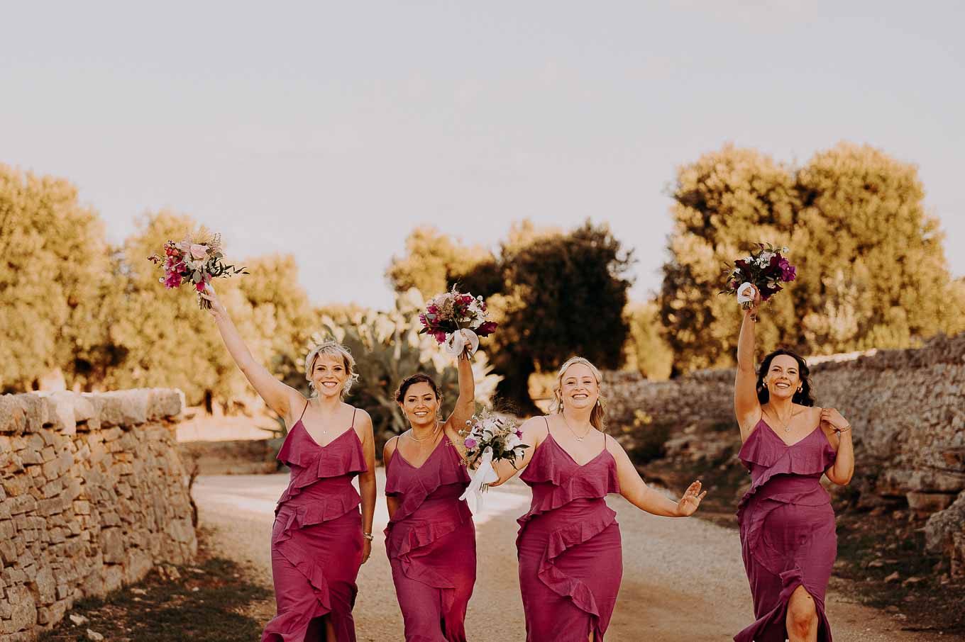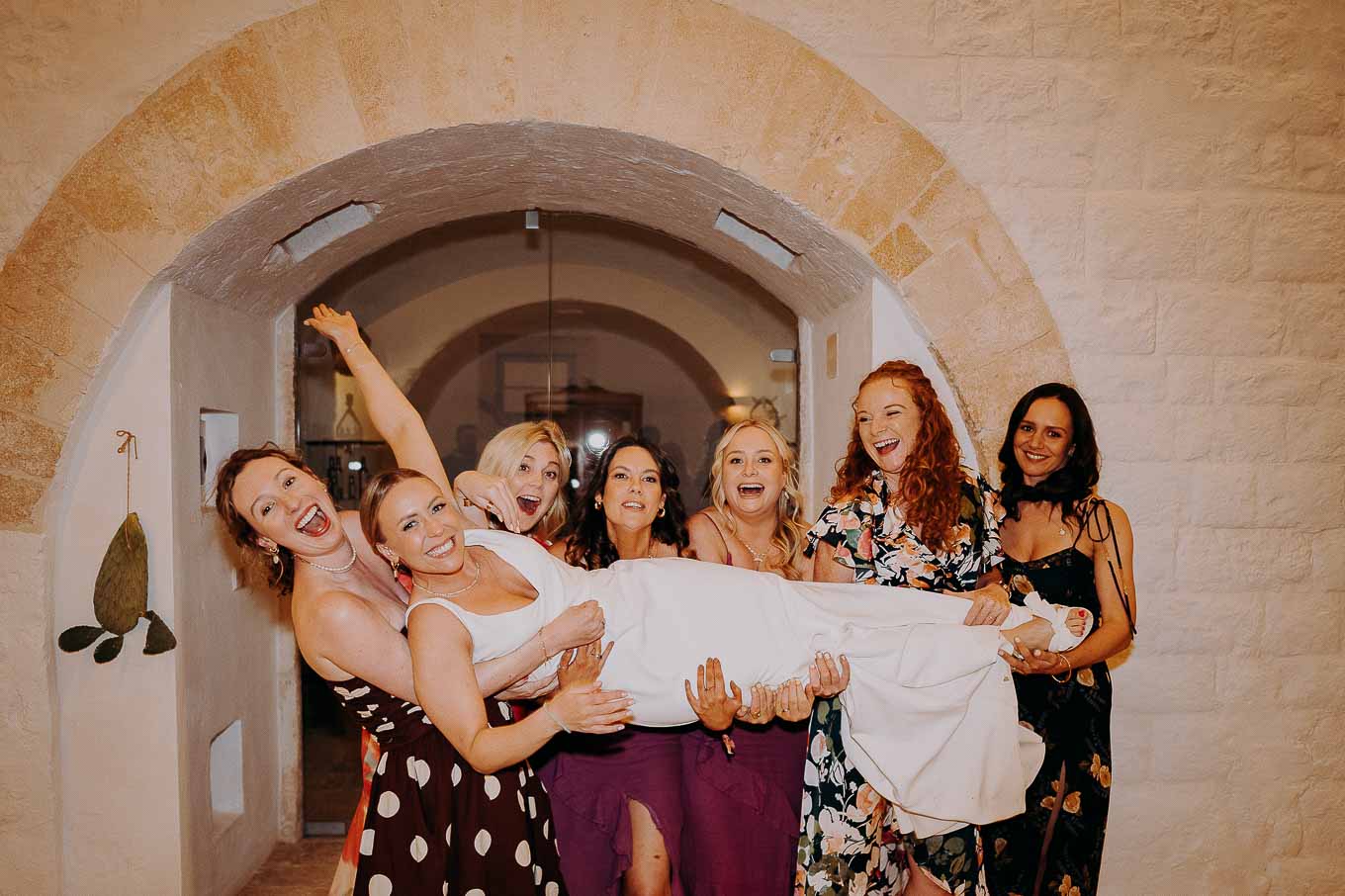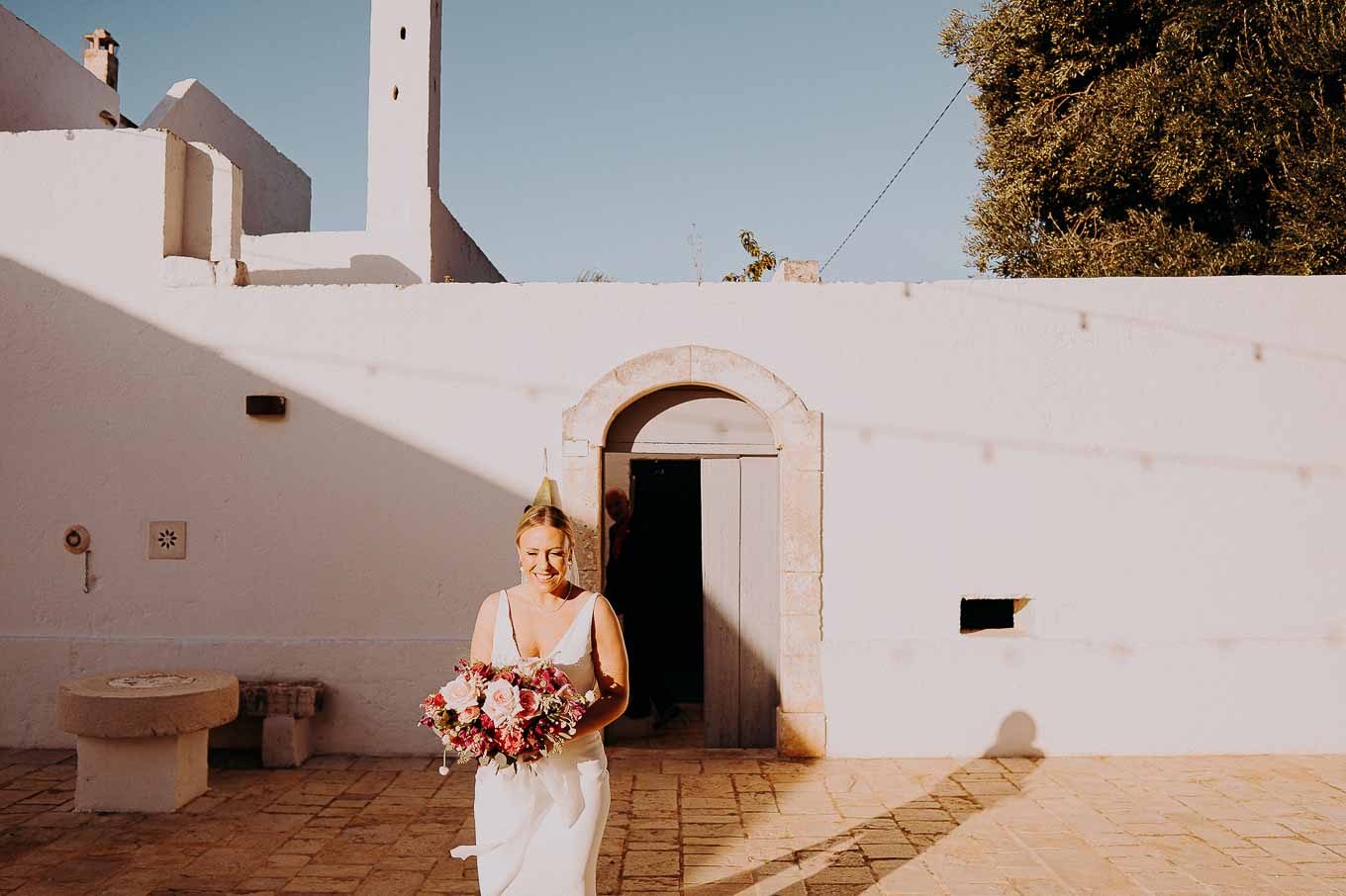 I preparativi sono cominciati nella tarda mattinata, quando Lucy si è ritirata in una delle eleganti suite della Masseria per prepararsi insieme alle sue amiche più care. L’atmosfera era carica di emozione ma anche di leggerezza: tra brindisi, risate e piccoli momenti di complicità, Lucy ha vissuto un inizio di giornata indimenticabile. Il design raffinato degli interni, unito alla quiete dei giardini privati, ha reso questo momento ancora più speciale. Le sue amiche sono state una presenza fondamentale, contribuendo con spontaneità e affetto a rendere la preparazione una vera e propria festa.