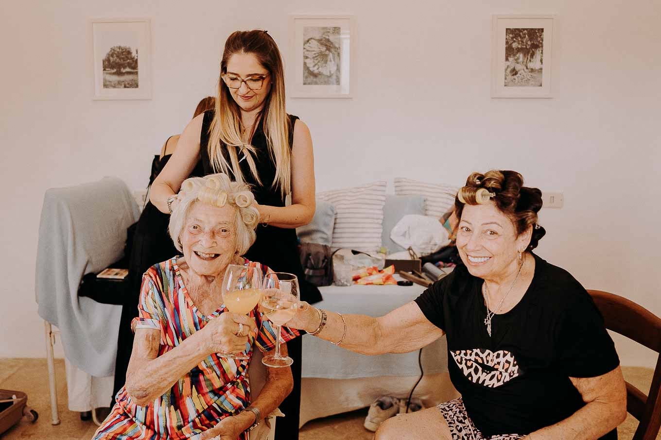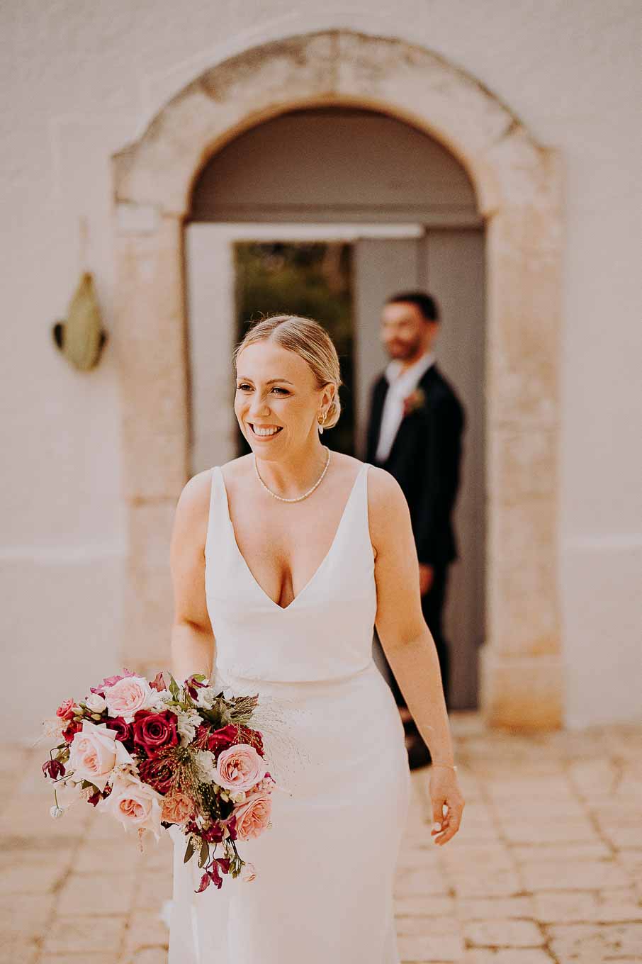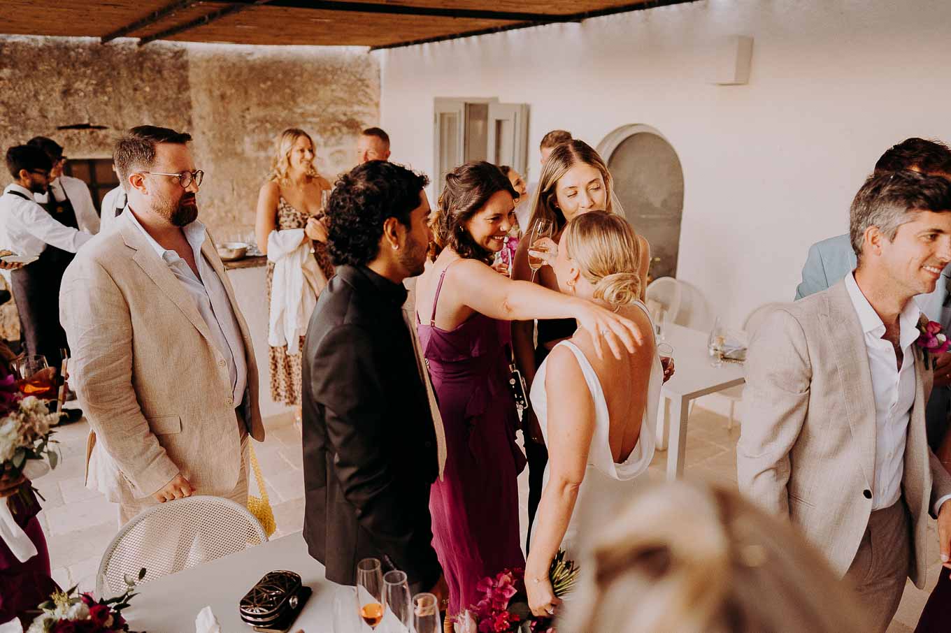 I preparativi sono cominciati nella tarda mattinata, quando Lucy si è ritirata in una delle eleganti suite della Masseria per prepararsi insieme alle sue amiche più care. L’atmosfera era carica di emozione ma anche di leggerezza: tra brindisi, risate e piccoli momenti di complicità, Lucy ha vissuto un inizio di giornata indimenticabile. Il design raffinato degli interni, unito alla quiete dei giardini privati, ha reso questo momento ancora più speciale. Le sue amiche sono state una presenza fondamentale, contribuendo con spontaneità e affetto a rendere la preparazione una vera e propria festa.