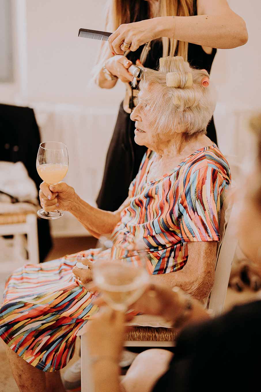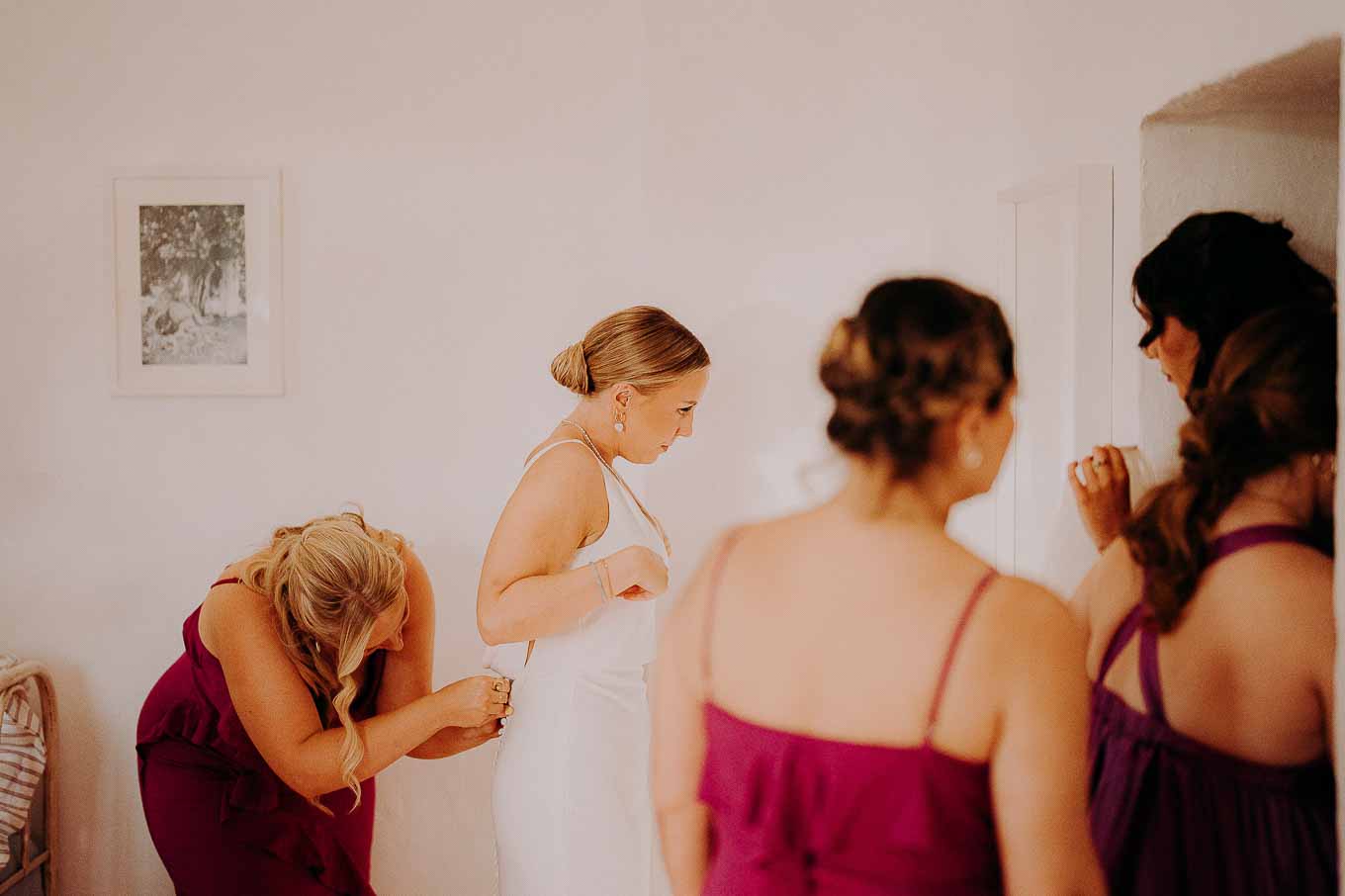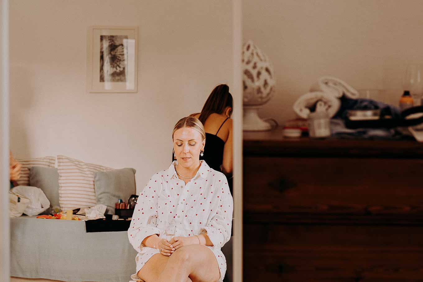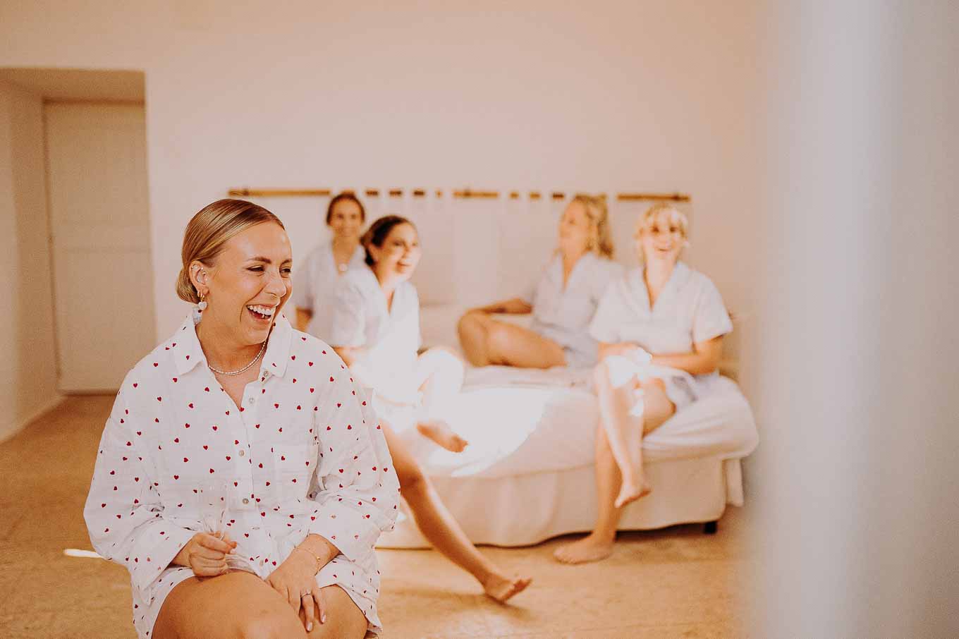 I preparativi sono cominciati nella tarda mattinata, quando Lucy si è ritirata in una delle eleganti suite della Masseria per prepararsi insieme alle sue amiche più care. L’atmosfera era carica di emozione ma anche di leggerezza: tra brindisi, risate e piccoli momenti di complicità, Lucy ha vissuto un inizio di giornata indimenticabile. Il design raffinato degli interni, unito alla quiete dei giardini privati, ha reso questo momento ancora più speciale. Le sue amiche sono state una presenza fondamentale, contribuendo con spontaneità e affetto a rendere la preparazione una vera e propria festa.