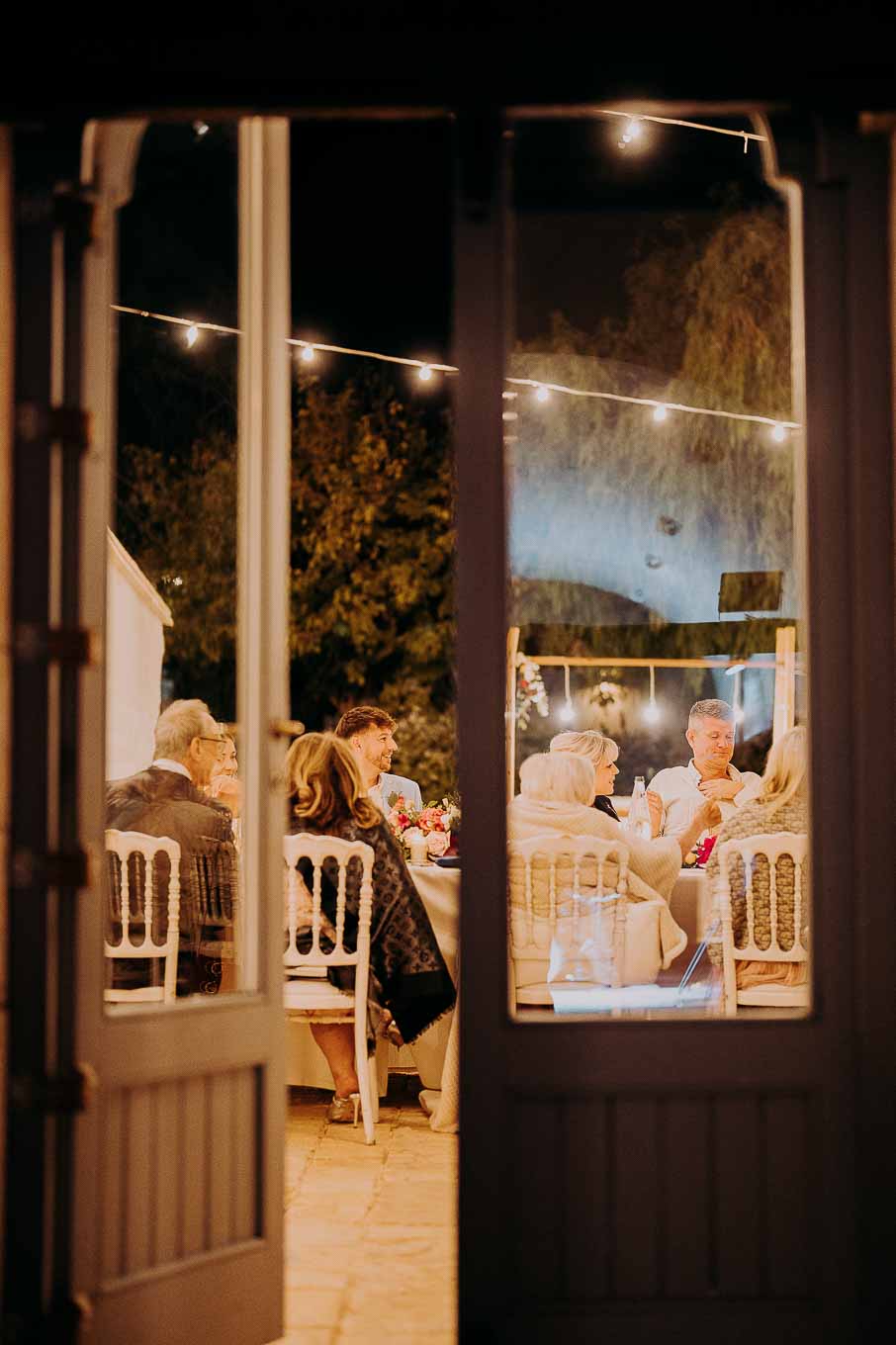 La cena si è tenuta all’aperto, sotto un cielo stellato, in uno spazio finemente allestito con lucine, candele e arredi eleganti, curato nei minimi dettagli grazie all'aiuto della loro wedding planner. L’atmosfera era sognante, raffinata ma al tempo stesso familiare. Durante la cena, amici e parenti hanno preso la parola per dedicare discorsi emozionanti e pieni d'amore agli sposi. Le parole sincere, le risate e qualche lacrima hanno reso la serata ancora più significativa.