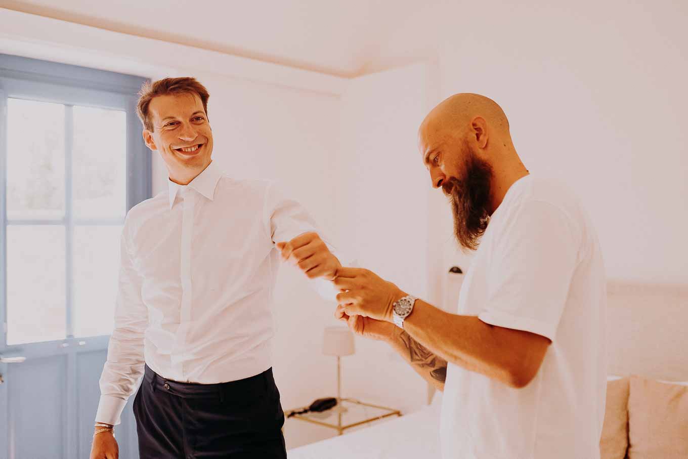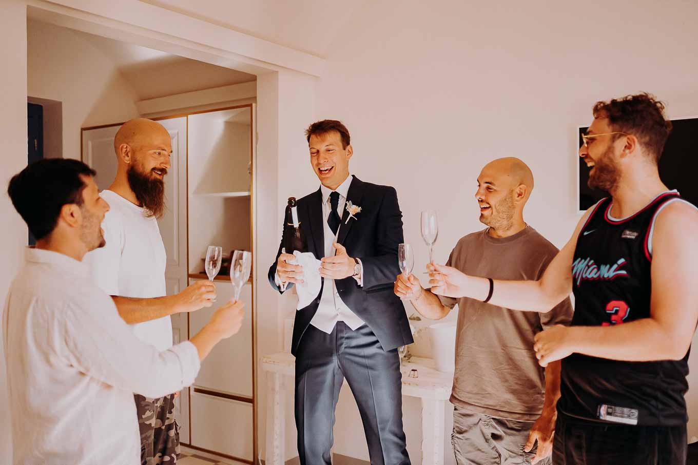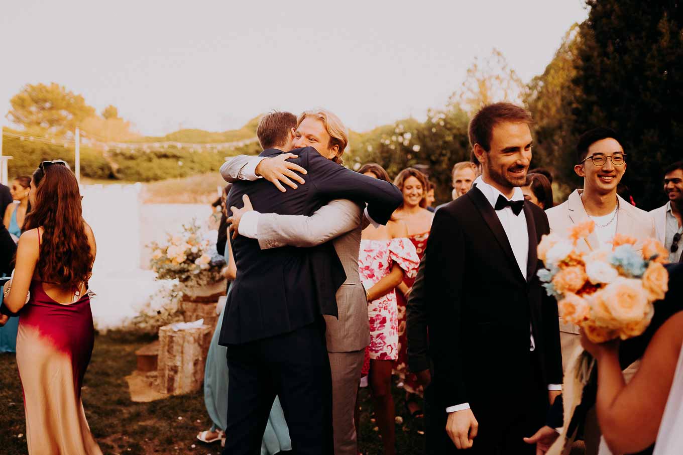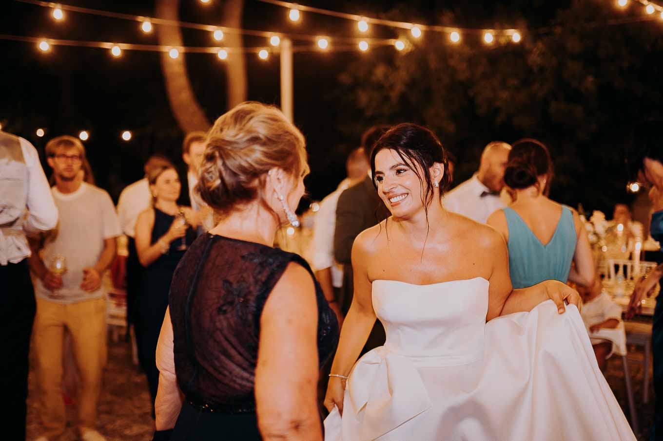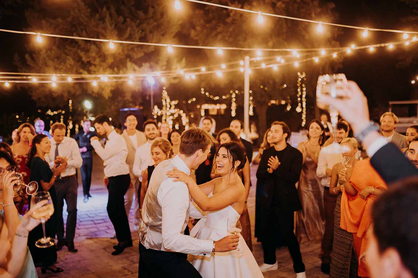 Dopo la cena, la festa è continuata con musica, balli e discorsi emozionanti. Gli amici degli sposi si sono scatenati sulla pista da ballo, creando un clima di allegria e spensieratezza. La serata si è conclusa con un brindisi sotto le stelle, celebrando l'amore e l'amicizia in un contesto unico e suggestivo.