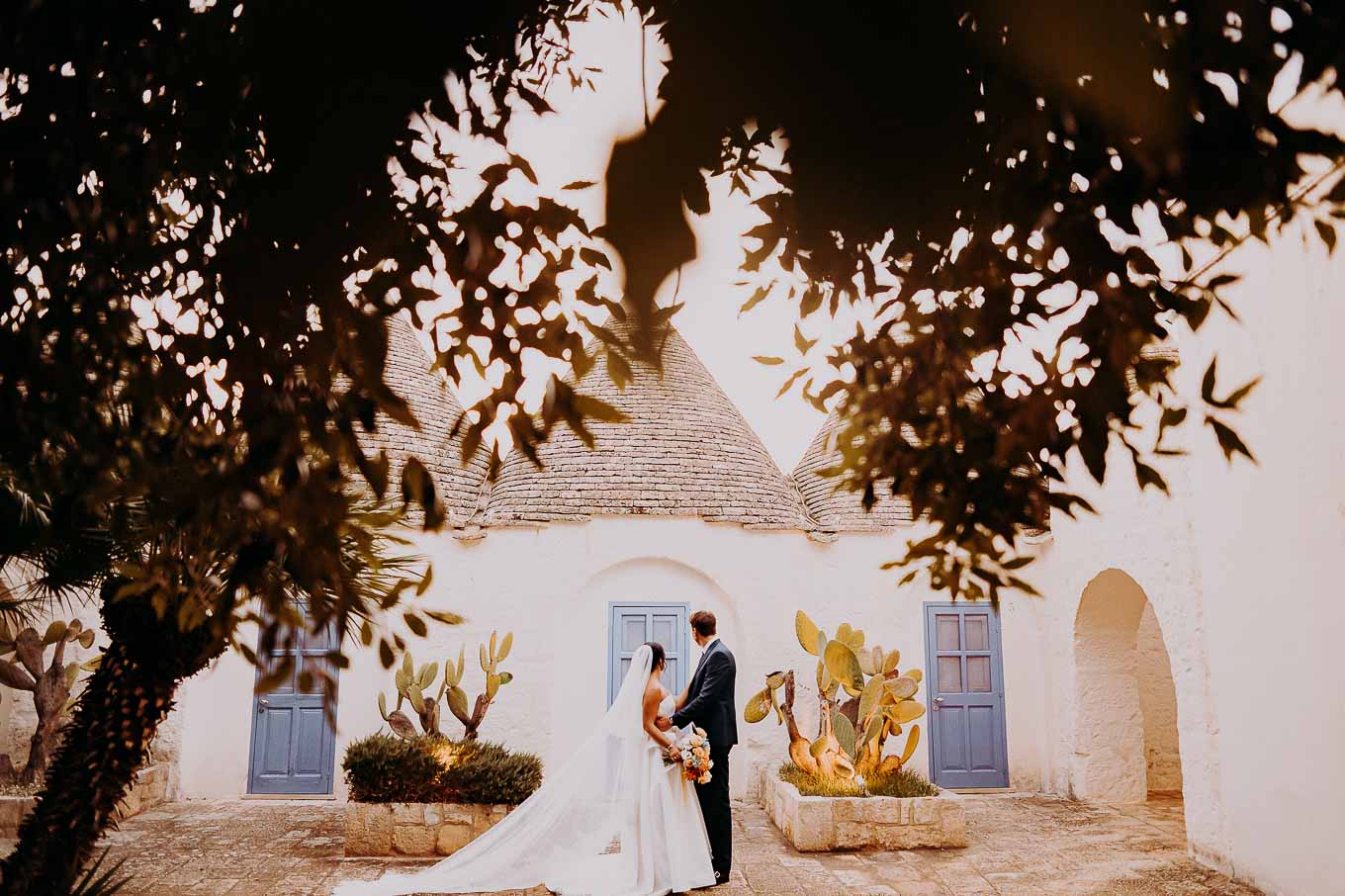 Dopo la cerimonia, Piero e Lucianajulia hanno scelto alcuni angoli iconici di Villa Cenci per le loro foto. Tra questi, i trulli seicenteschi, simbolo della Puglia, e gli spazi interni della masseria, caratterizzati da luci soffuse e dettagli raffinati, hanno offerto sfondi perfetti per immortalare momenti indimenticabili.