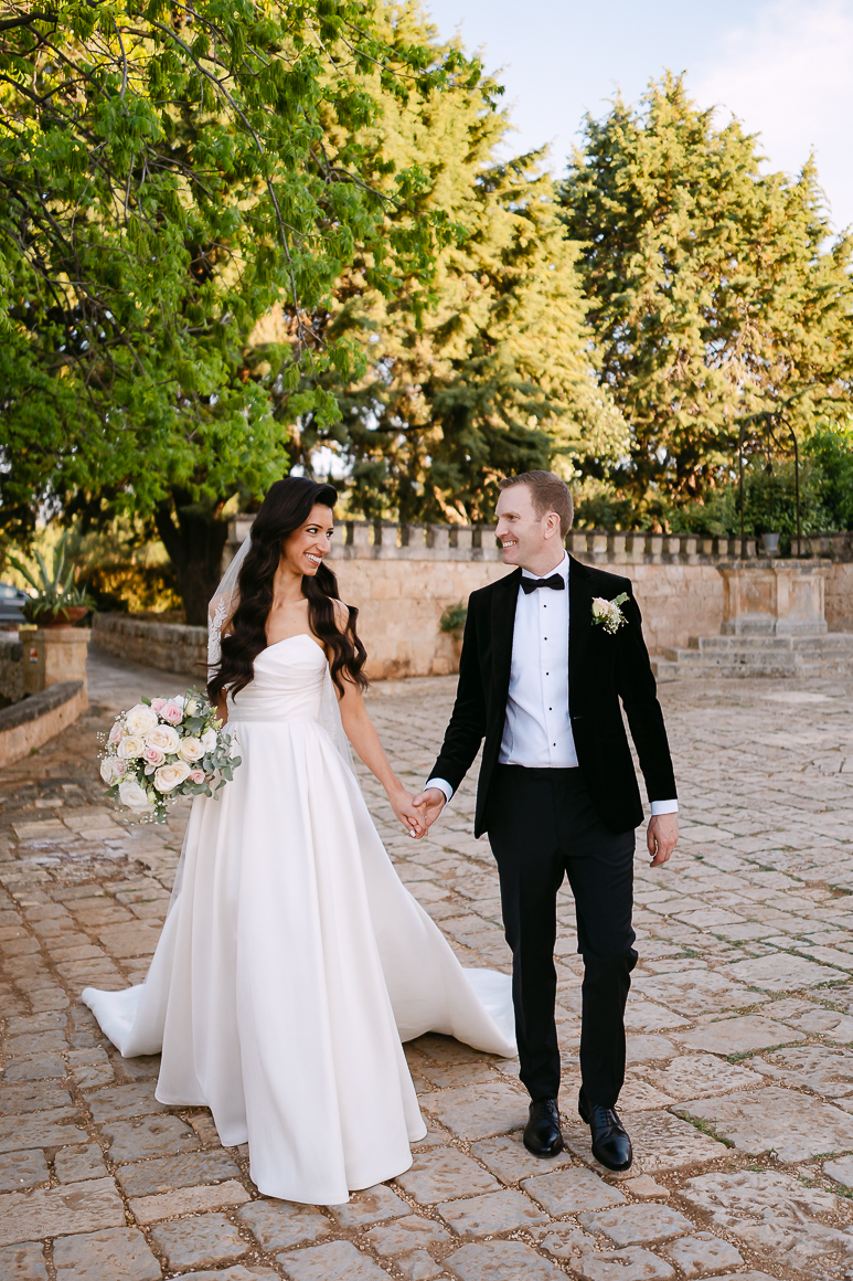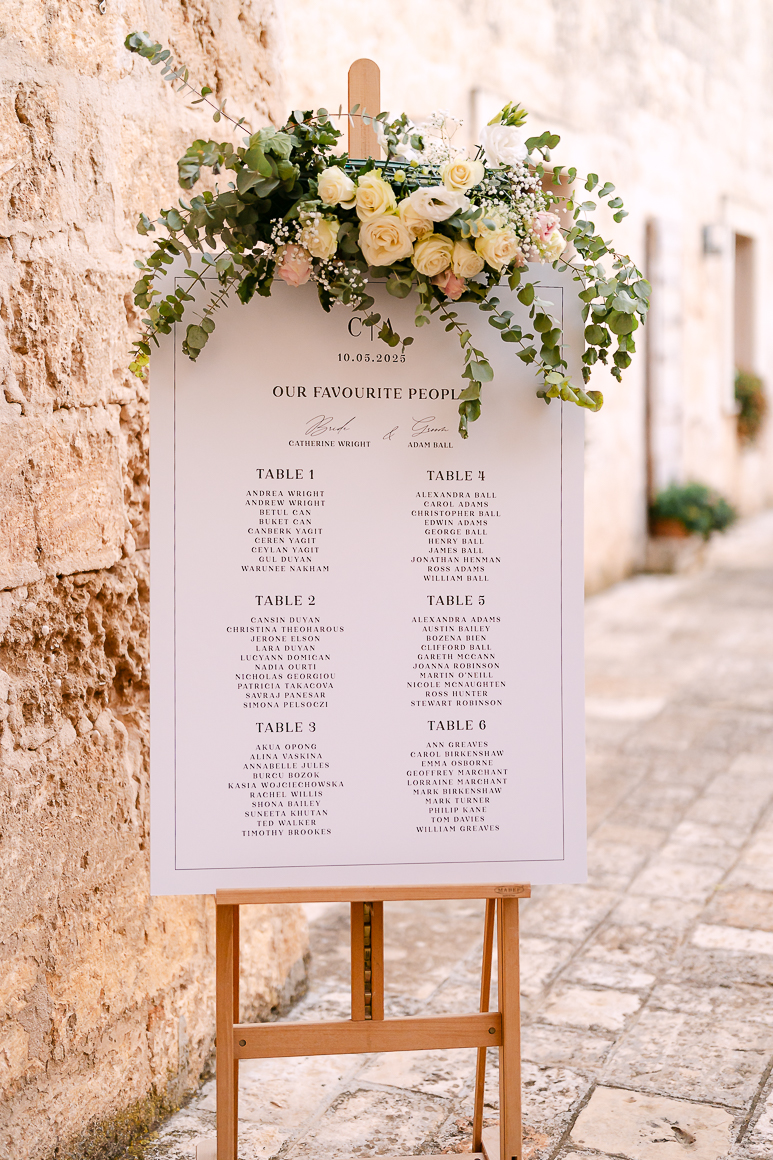 Adam e Catherine, una coppia britannica innamorata dell’Italia — e in particolare della Puglia — hanno scelto questo luogo incantevole per celebrare il loro matrimonio, circondati dalla bellezza mozzafiato della Valle d’Itria.