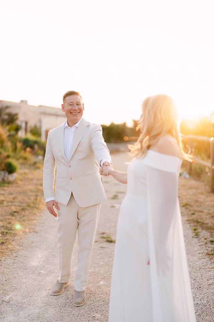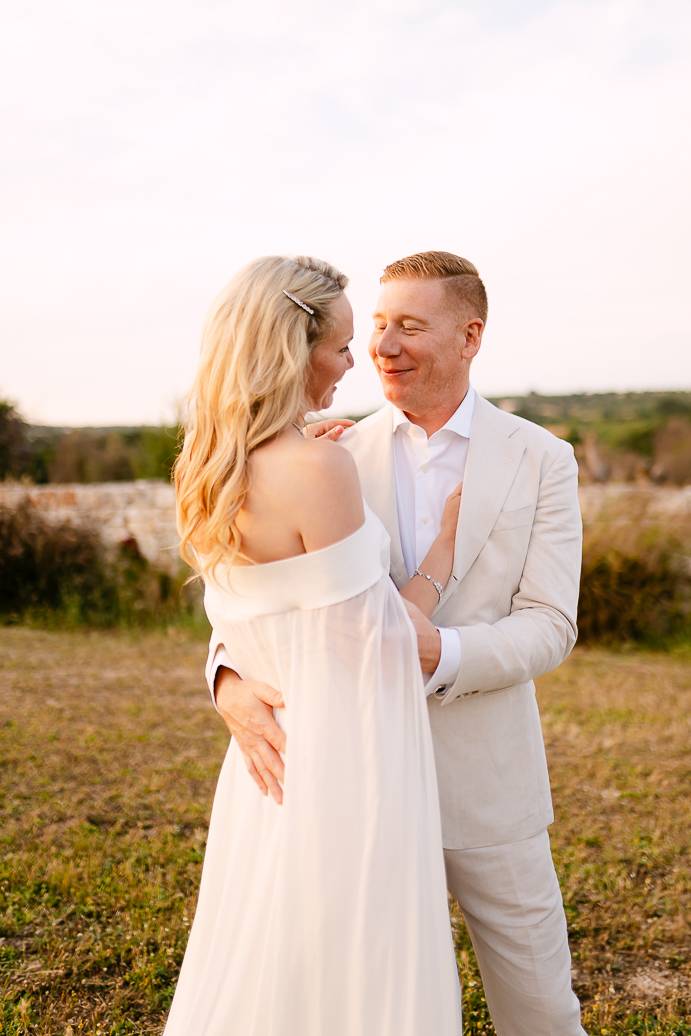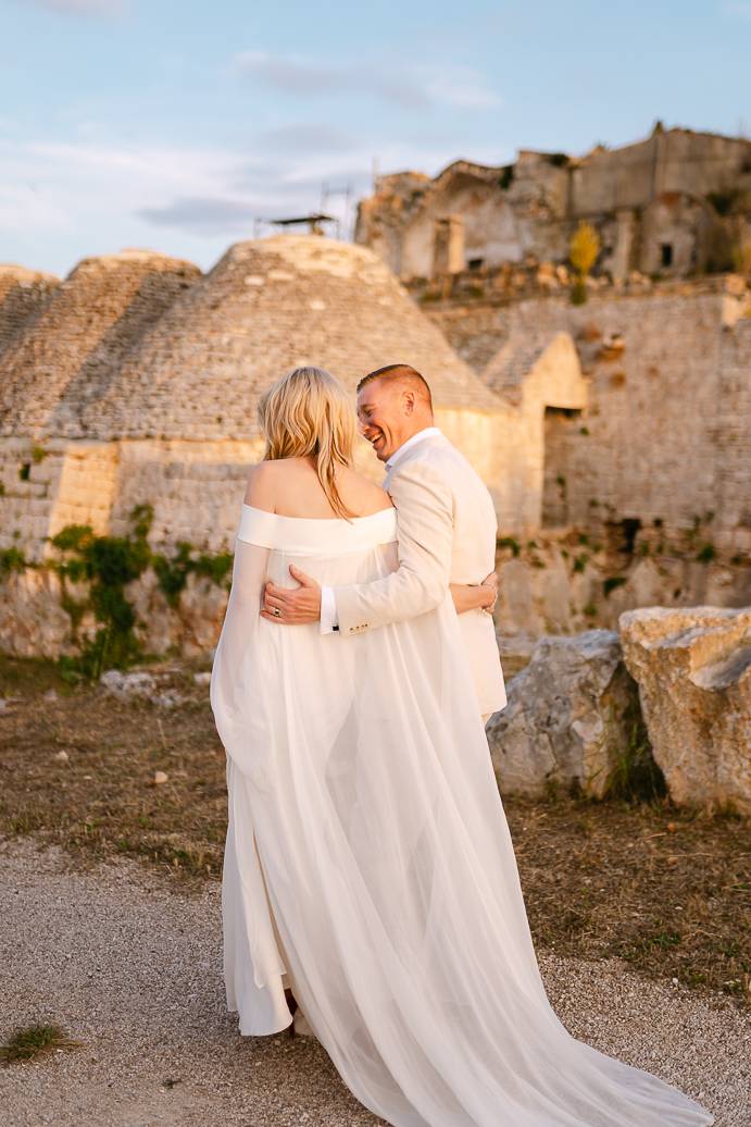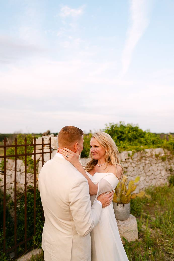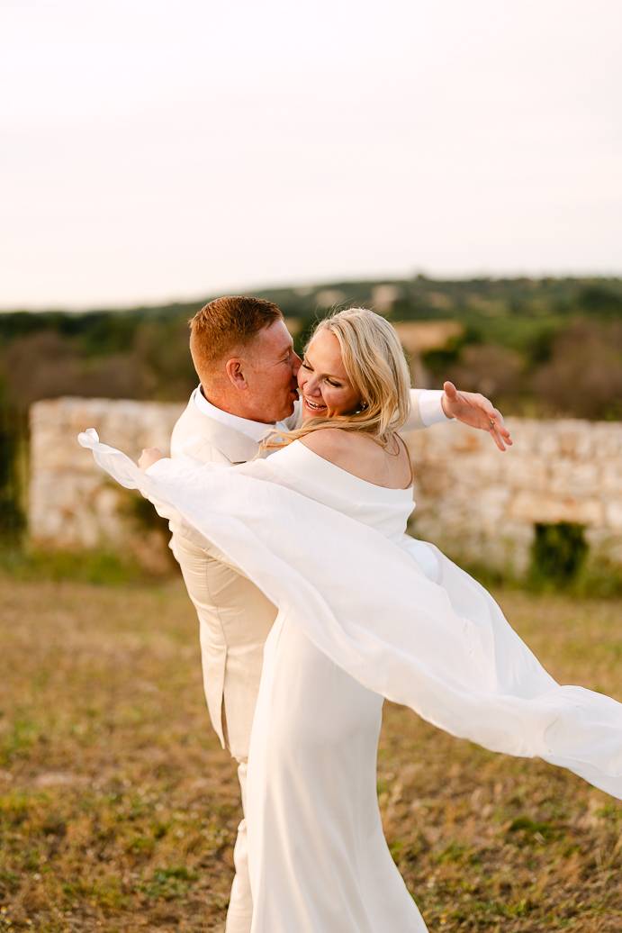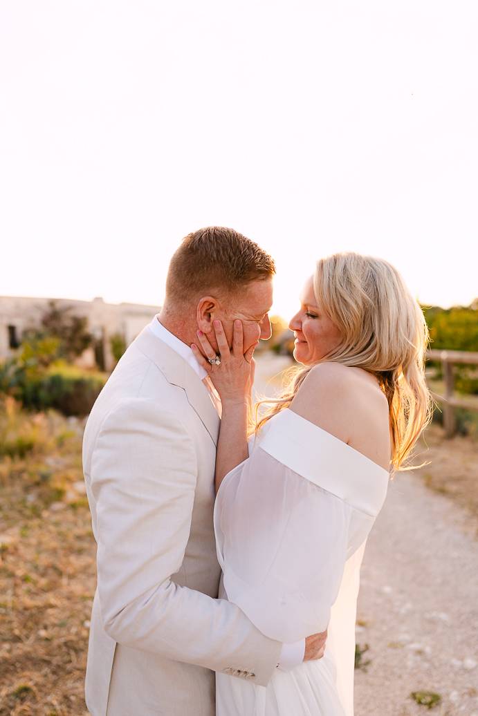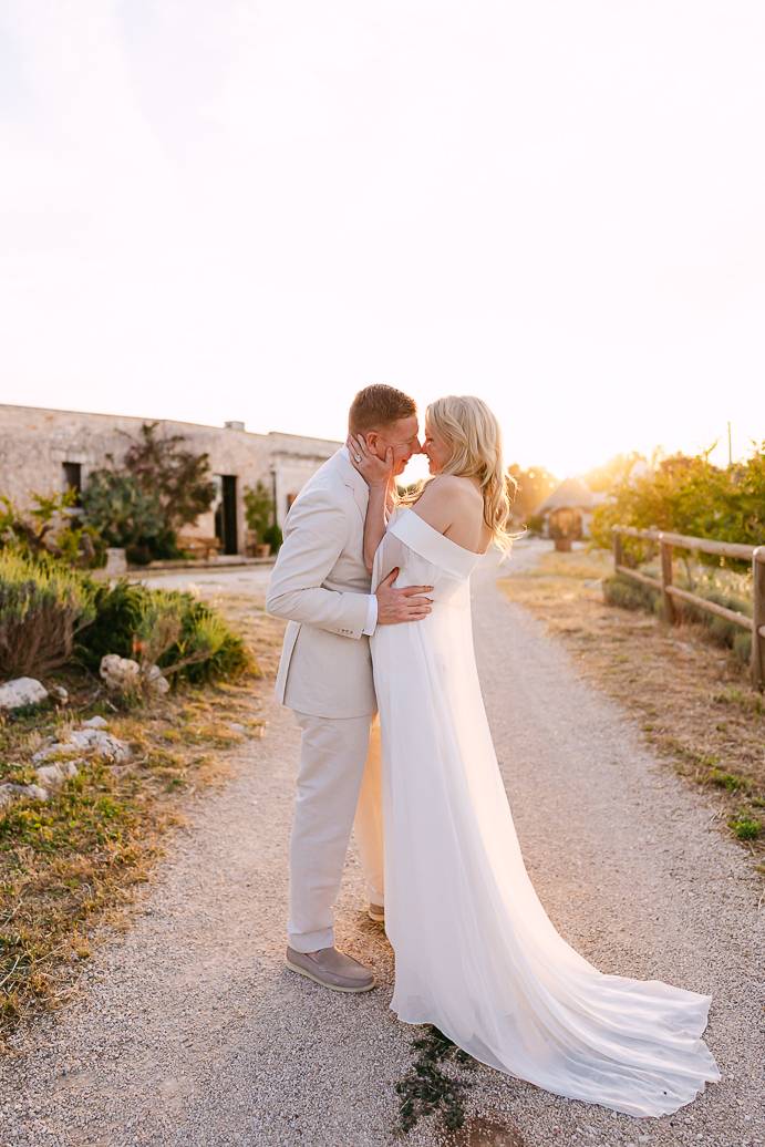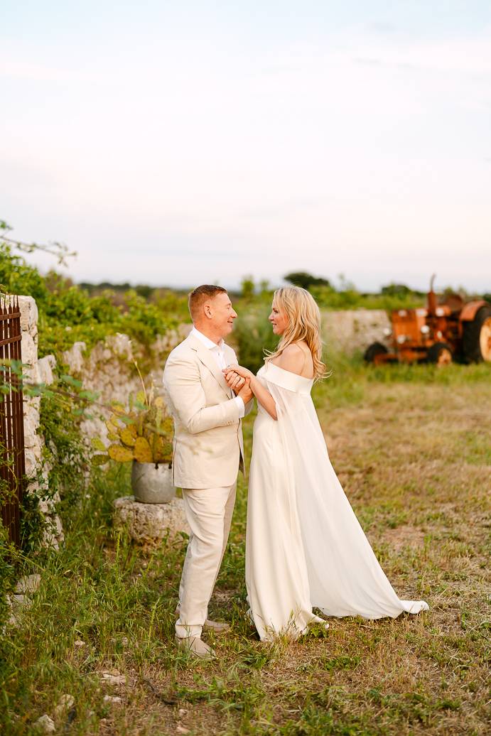 Franky e Erin hanno percorso molta strada dall’estero per sposarsi in Puglia, affascinati dalla bellezza delle campagne e dalla ricca cultura locale. La scelta di un elopement in terra pugliese ha permesso loro di coronare il sogno di un matrimonio autentico, lontano dallo stress e dalle convenzioni, e di vivere ogni istante secondo il loro cuore. Anche se erano solo in due, la loro emozione era tangibile: un matrimonio intimo può trasmettere la stessa, se non maggiore, intensità di un grande evento.