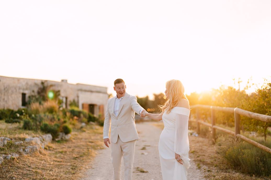 Assolutamente sì. Franky e Erin hanno viaggiato dall’estero per sposarsi in Puglia e coronare il loro sogno tra le campagne e la cultura locale. Un elopement permette di vivere un matrimonio senza complicazioni logistiche legate agli invitati.